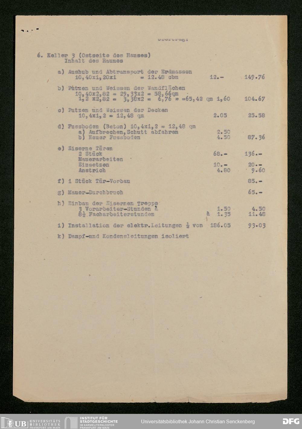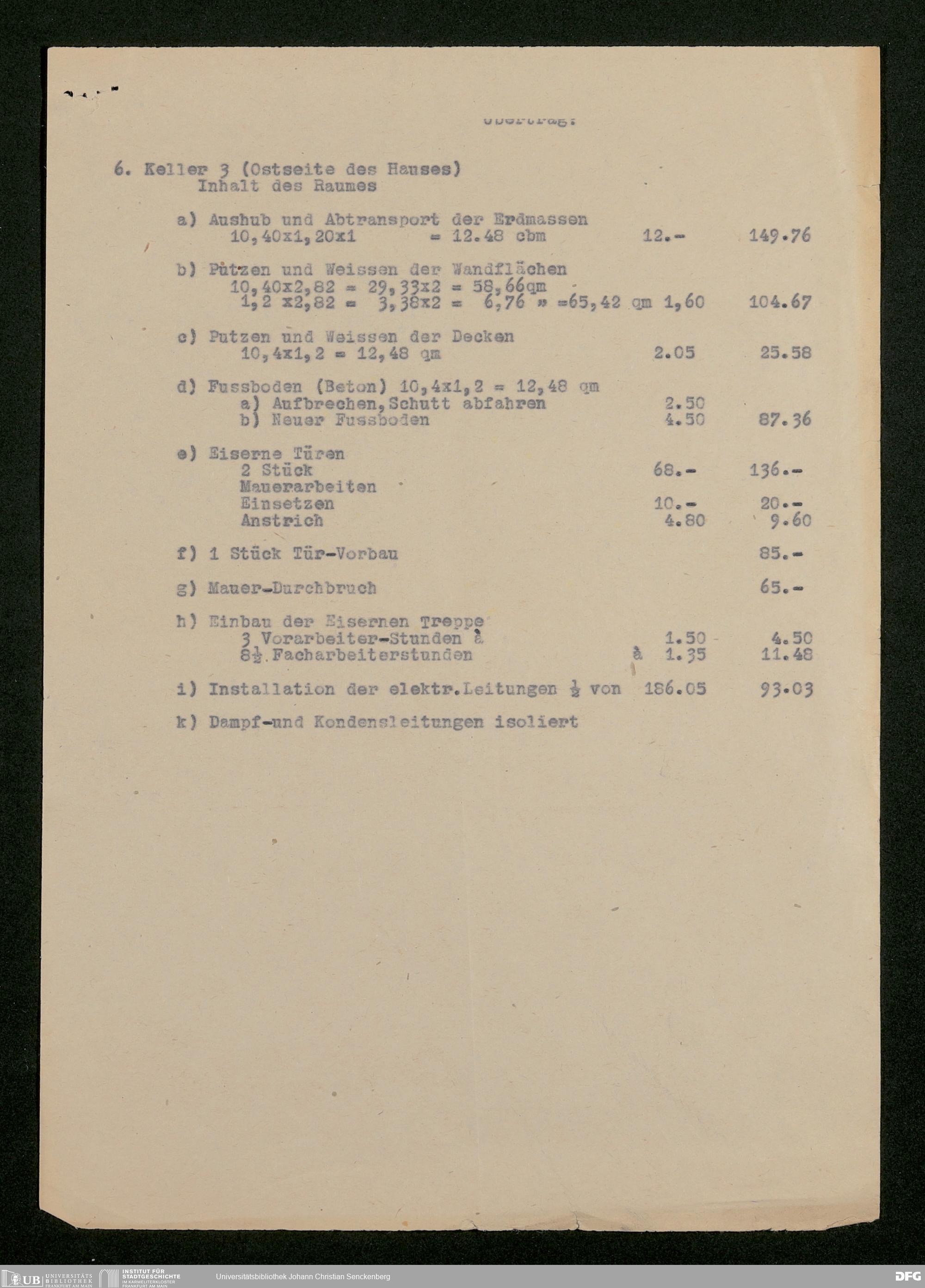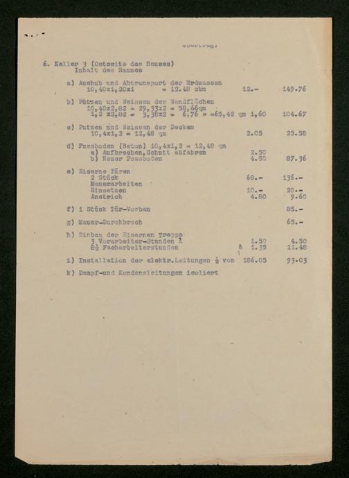 V176 Senckenberg Gesellschaft für Naturforschung, 598 - Kostenaufstellung für den Einbau eines Luftschutzkellers im Senckenbergmuseum mit Stellungnahme von Magistratsbaurat Heinrich Gresser