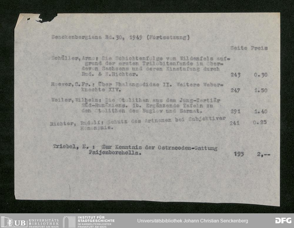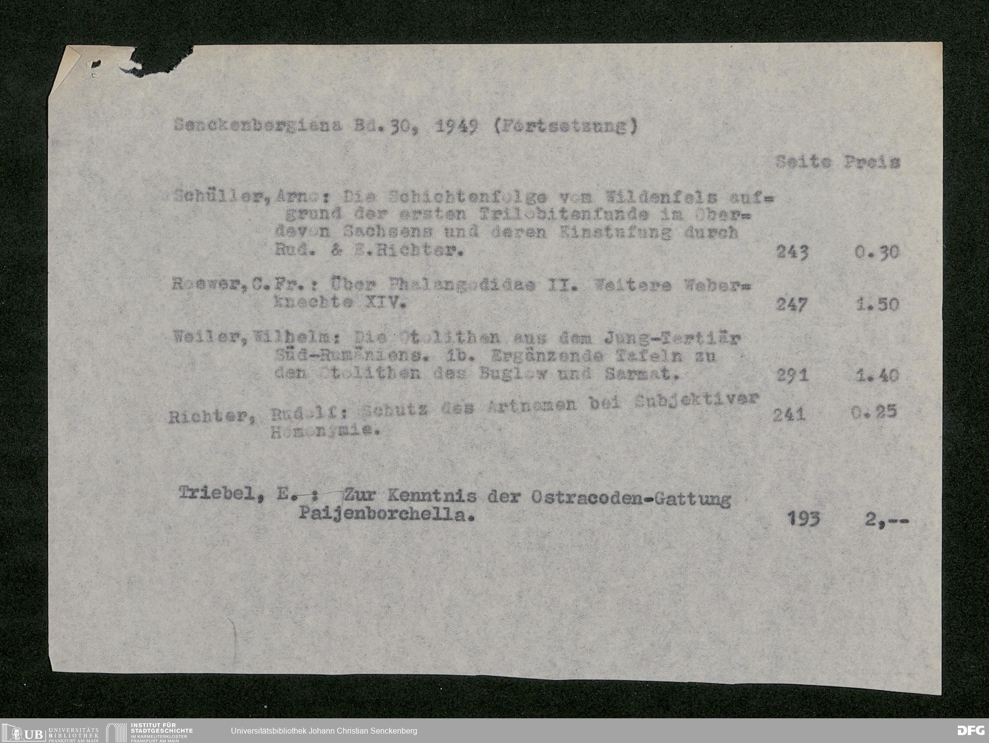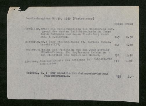 V176 Senckenberg Gesellschaft für Naturforschung, 599 - Preisverzeichnisse für Einzeldrucke aus den "Senckenbergiana"