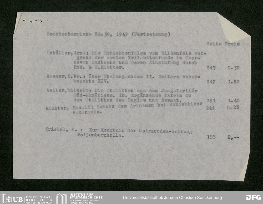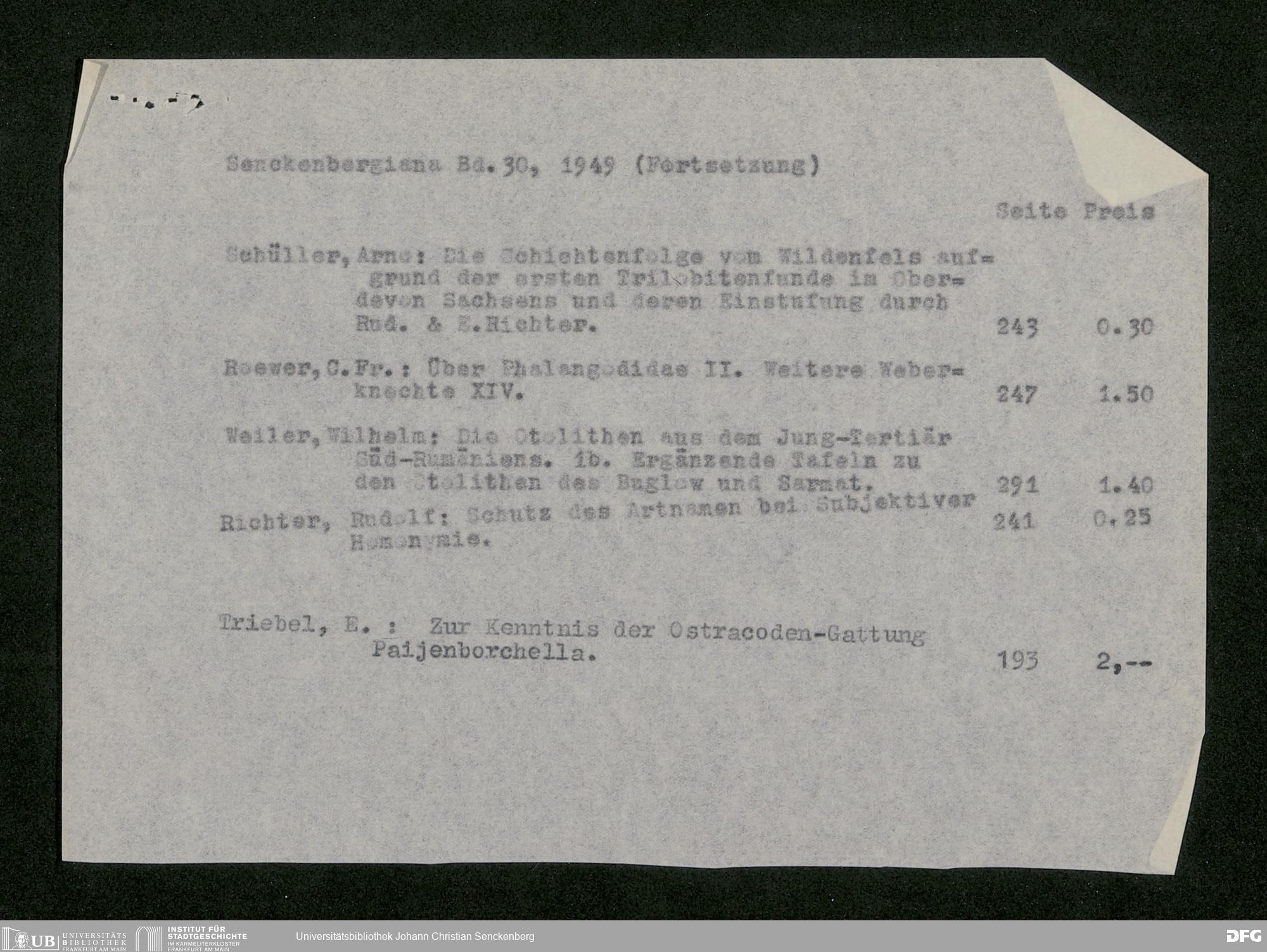 V176 Senckenberg Gesellschaft für Naturforschung, 599 - Preisverzeichnisse für Einzeldrucke aus den "Senckenbergiana"