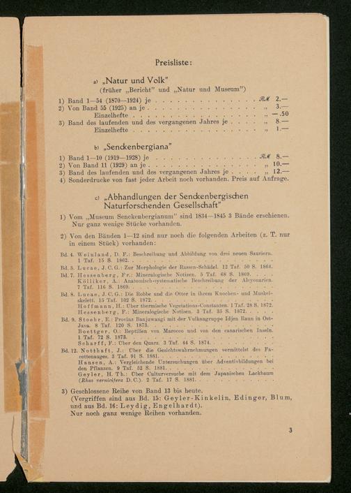 V176 Senckenberg Gesellschaft für Naturforschung, 600 - Preisliste für die Publikationen der Senckenbergischen Naturforschenden Gesellschaft