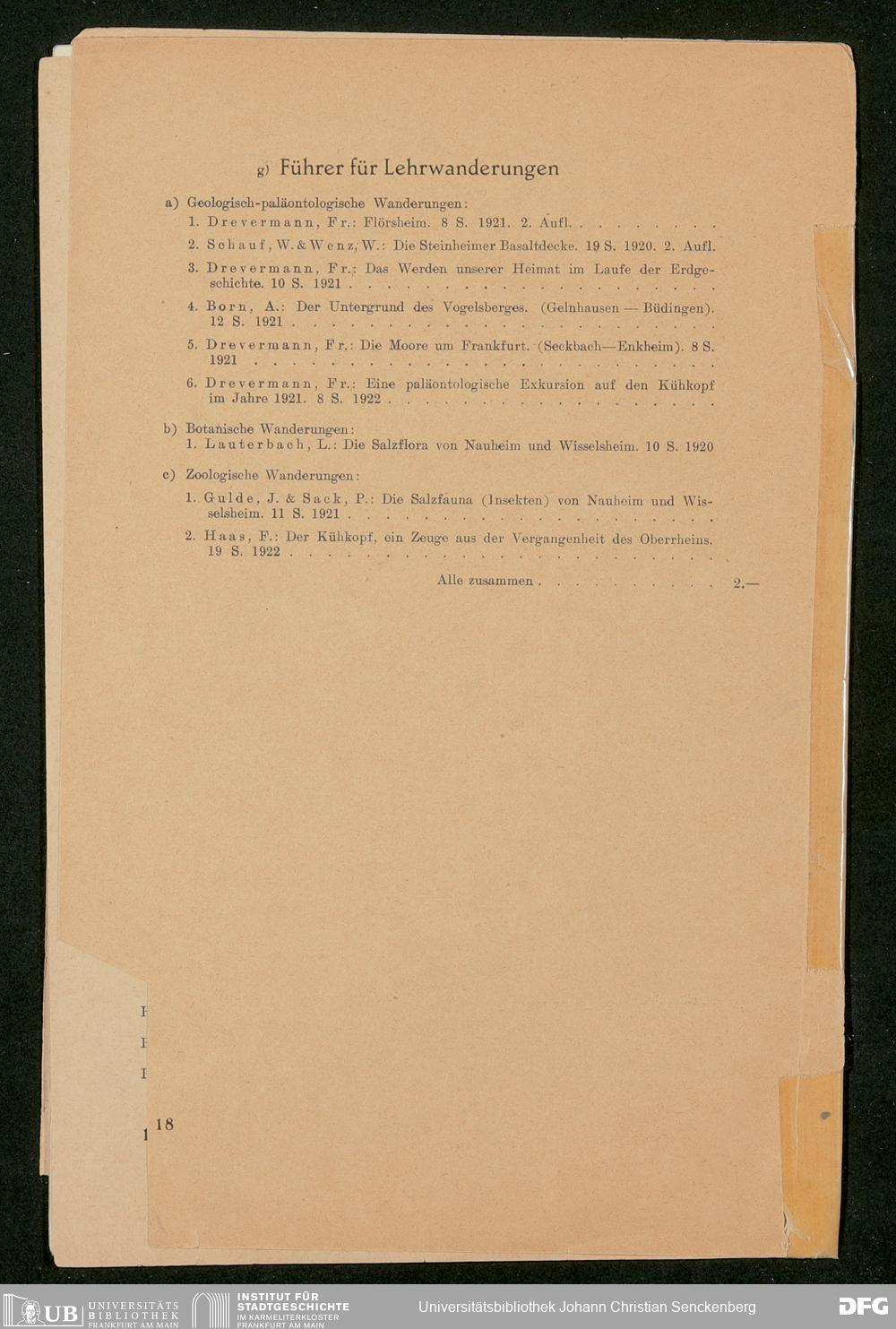 V176 Senckenberg Gesellschaft für Naturforschung, 600 - Preisliste für die Publikationen der Senckenbergischen Naturforschenden Gesellschaft