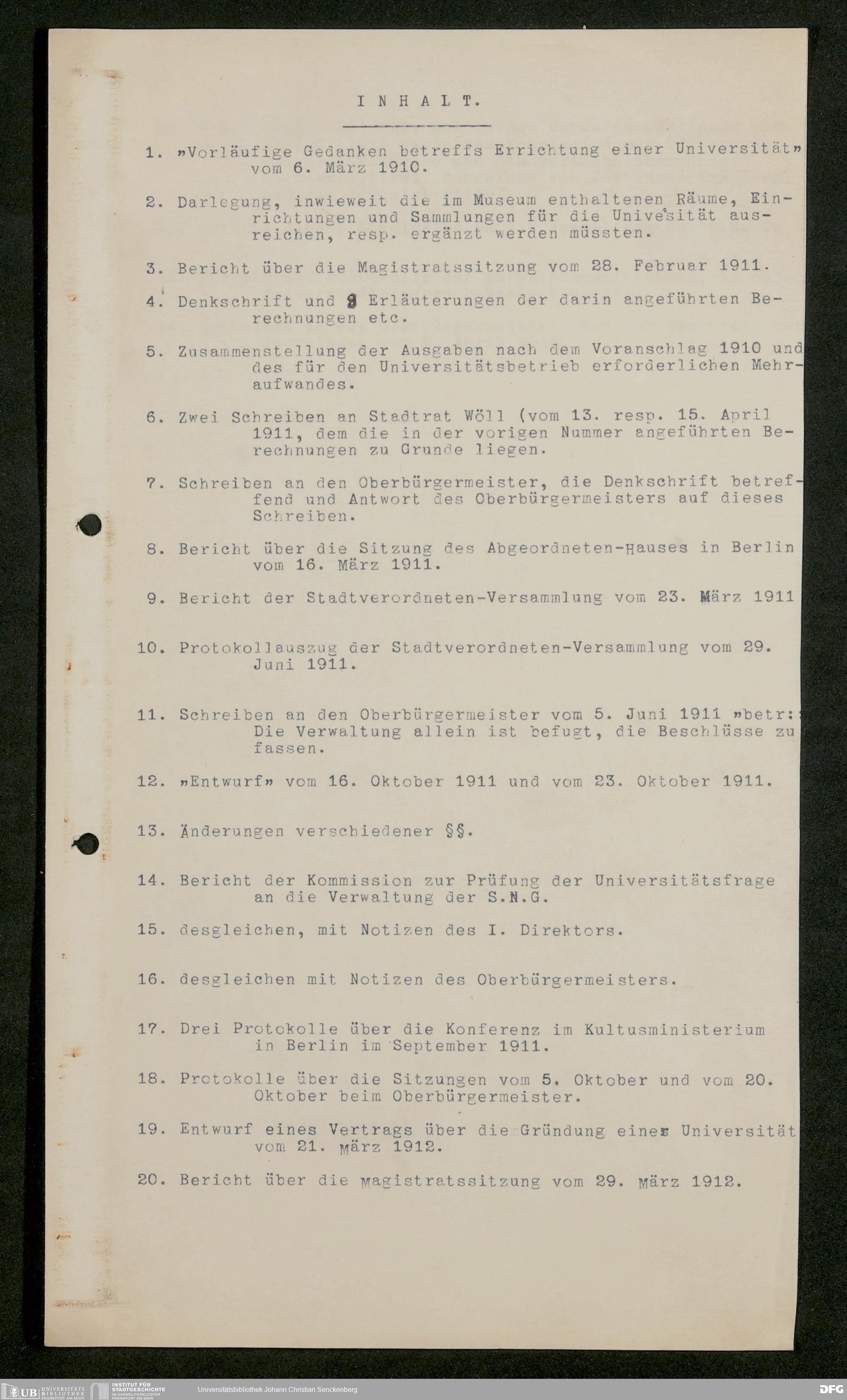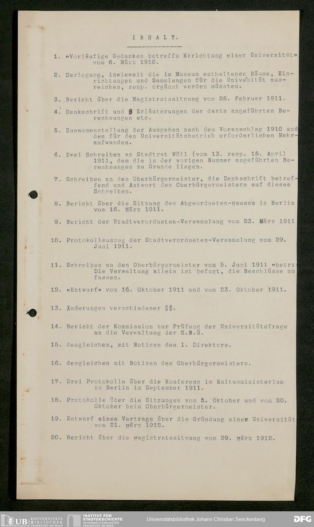 V176 Senckenberg Gesellschaft für Naturforschung, 611 - Vorbereitung der Gründung der Universität Frankfurt