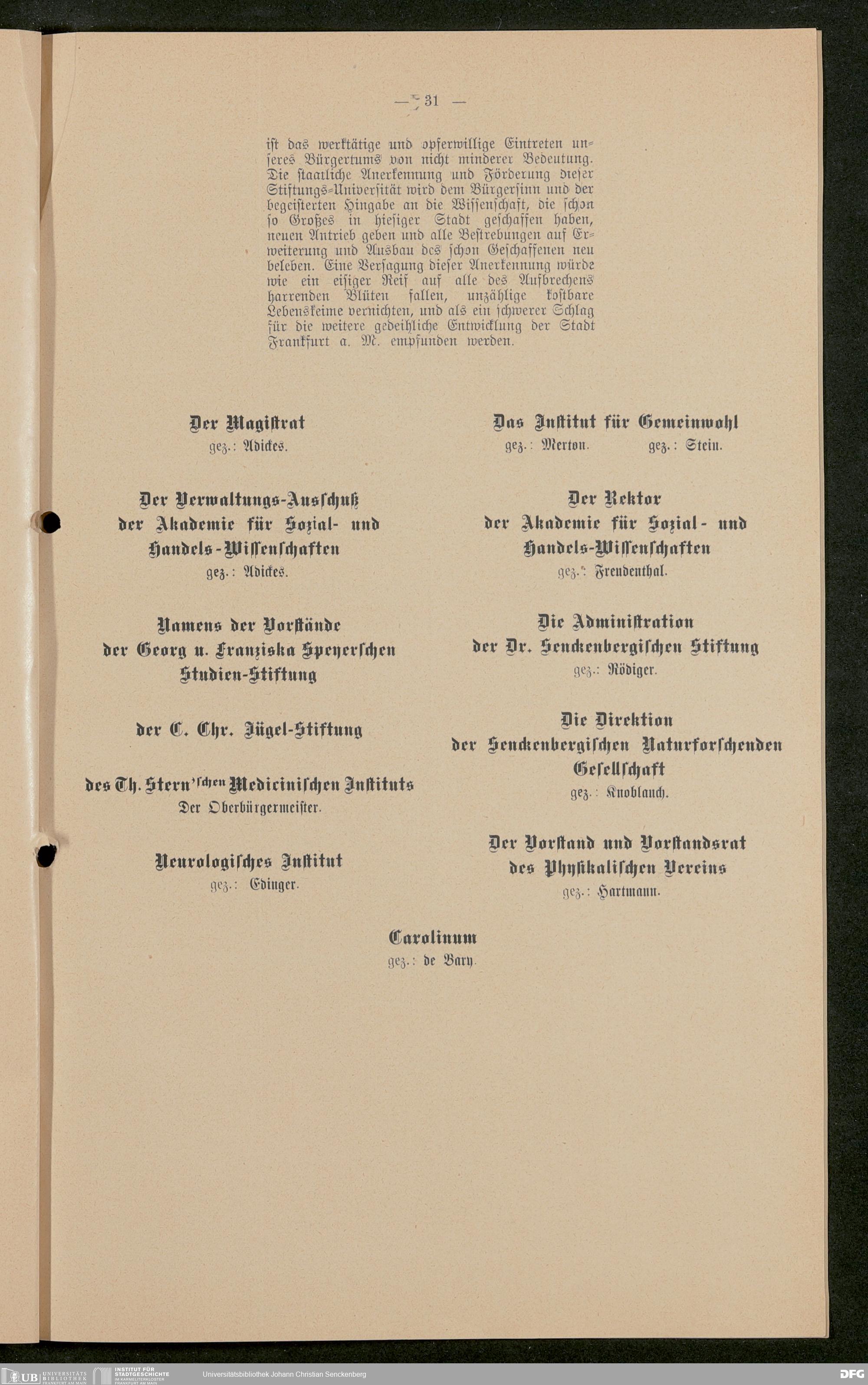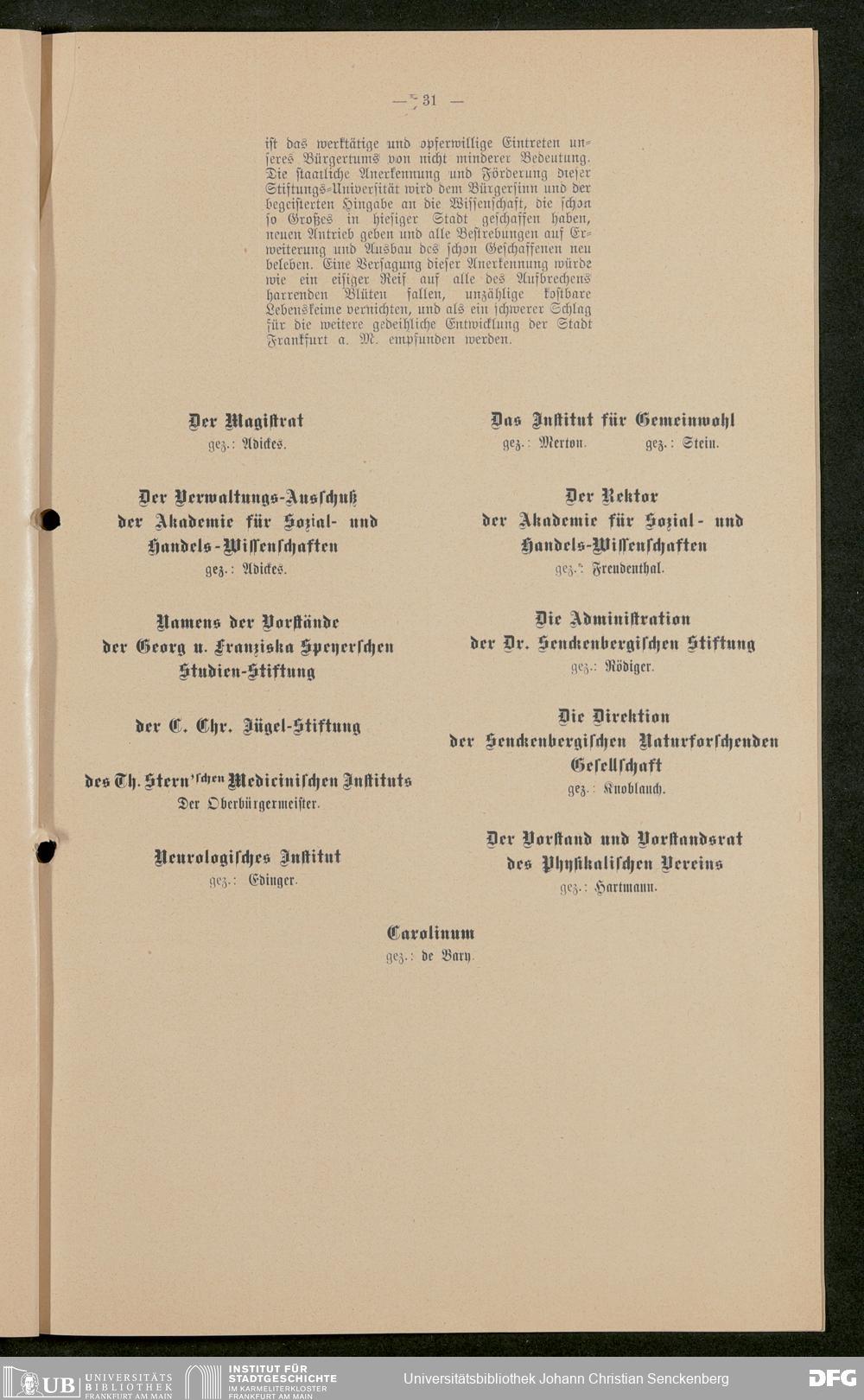 V176 Senckenberg Gesellschaft für Naturforschung, 611 - Vorbereitung der Gründung der Universität Frankfurt