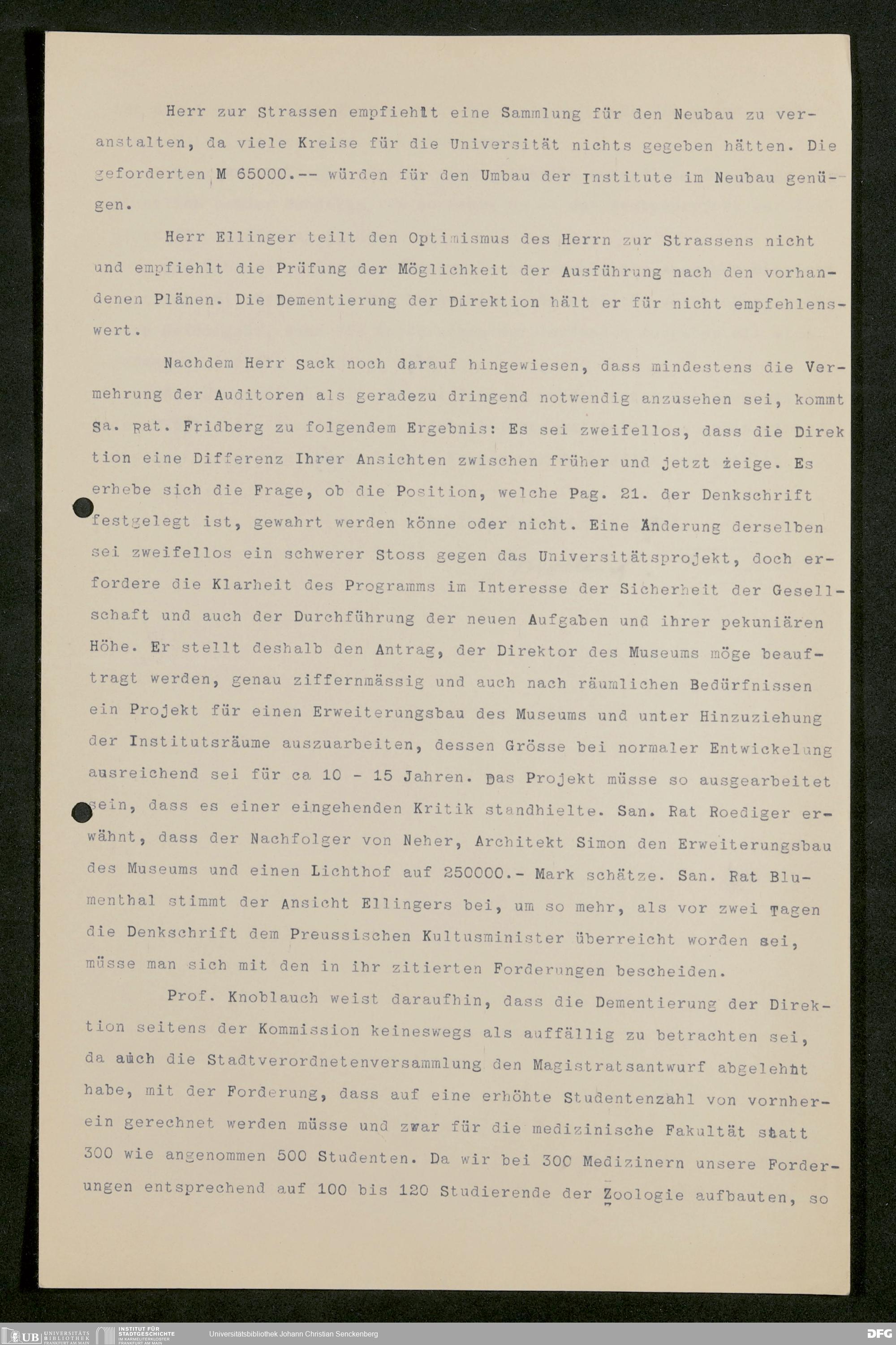 V176 Senckenberg Gesellschaft für Naturforschung, 611 - Vorbereitung der Gründung der Universität Frankfurt