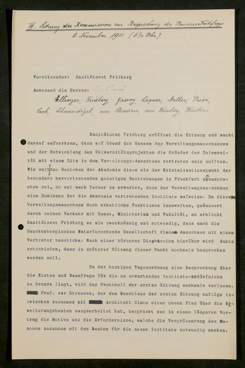 V176 Senckenberg Gesellschaft für Naturforschung, 611 - Vorbereitung der Gründung der Universität Frankfurt