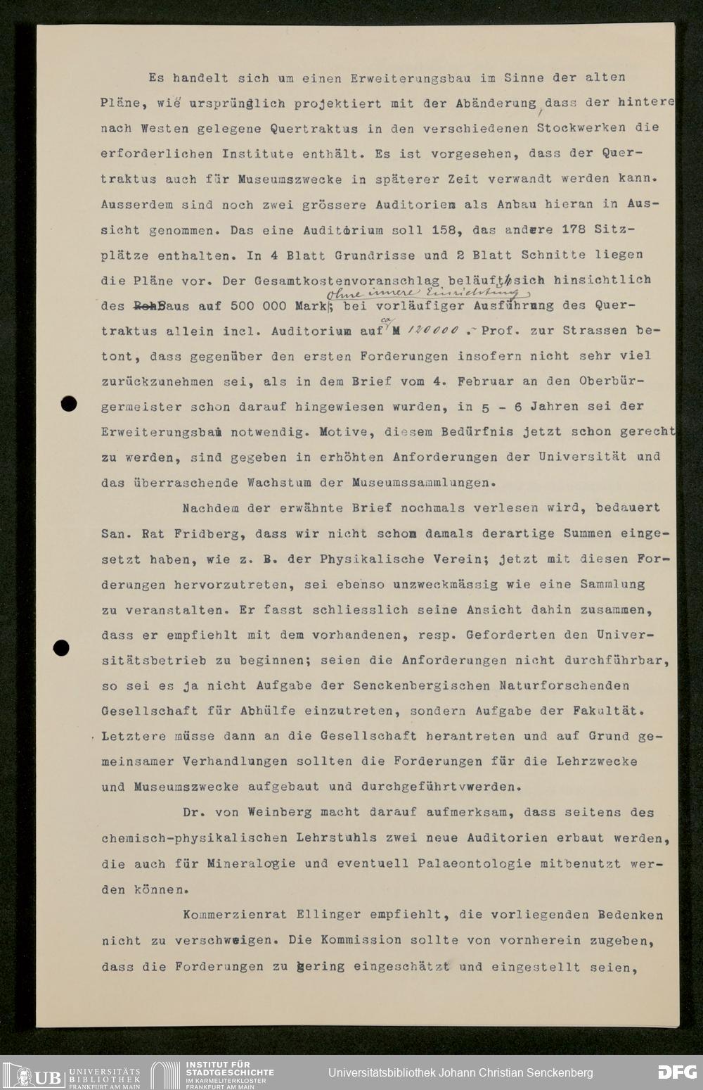 V176 Senckenberg Gesellschaft für Naturforschung, 611 - Vorbereitung der Gründung der Universität Frankfurt