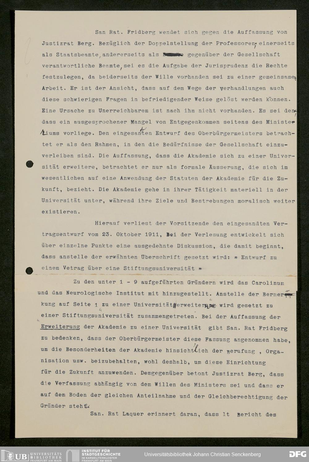 V176 Senckenberg Gesellschaft für Naturforschung, 611 - Vorbereitung der Gründung der Universität Frankfurt