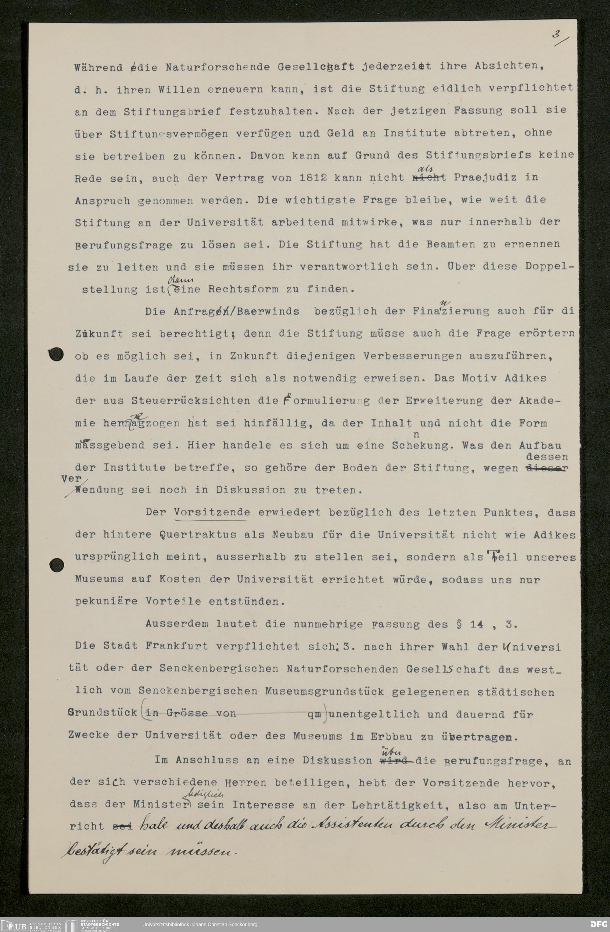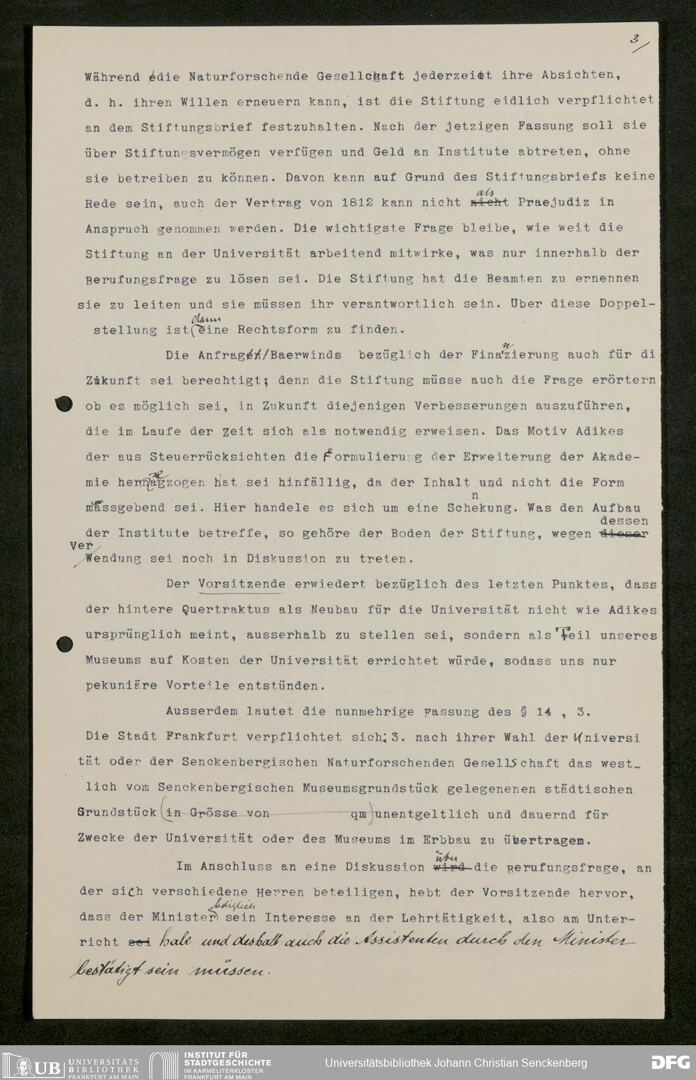 V176 Senckenberg Gesellschaft für Naturforschung, 611 - Vorbereitung der Gründung der Universität Frankfurt