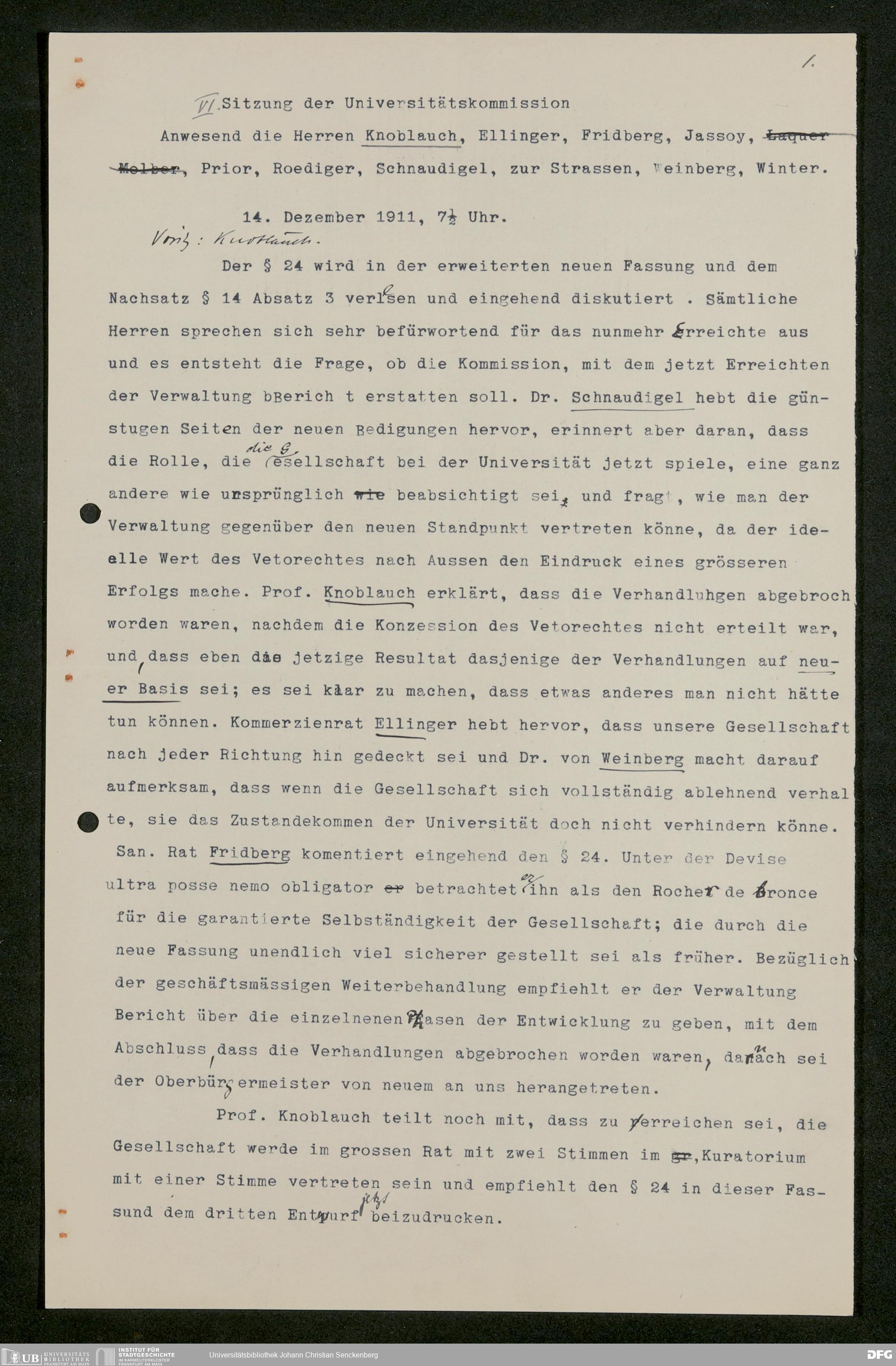 V176 Senckenberg Gesellschaft für Naturforschung, 611 - Vorbereitung der Gründung der Universität Frankfurt