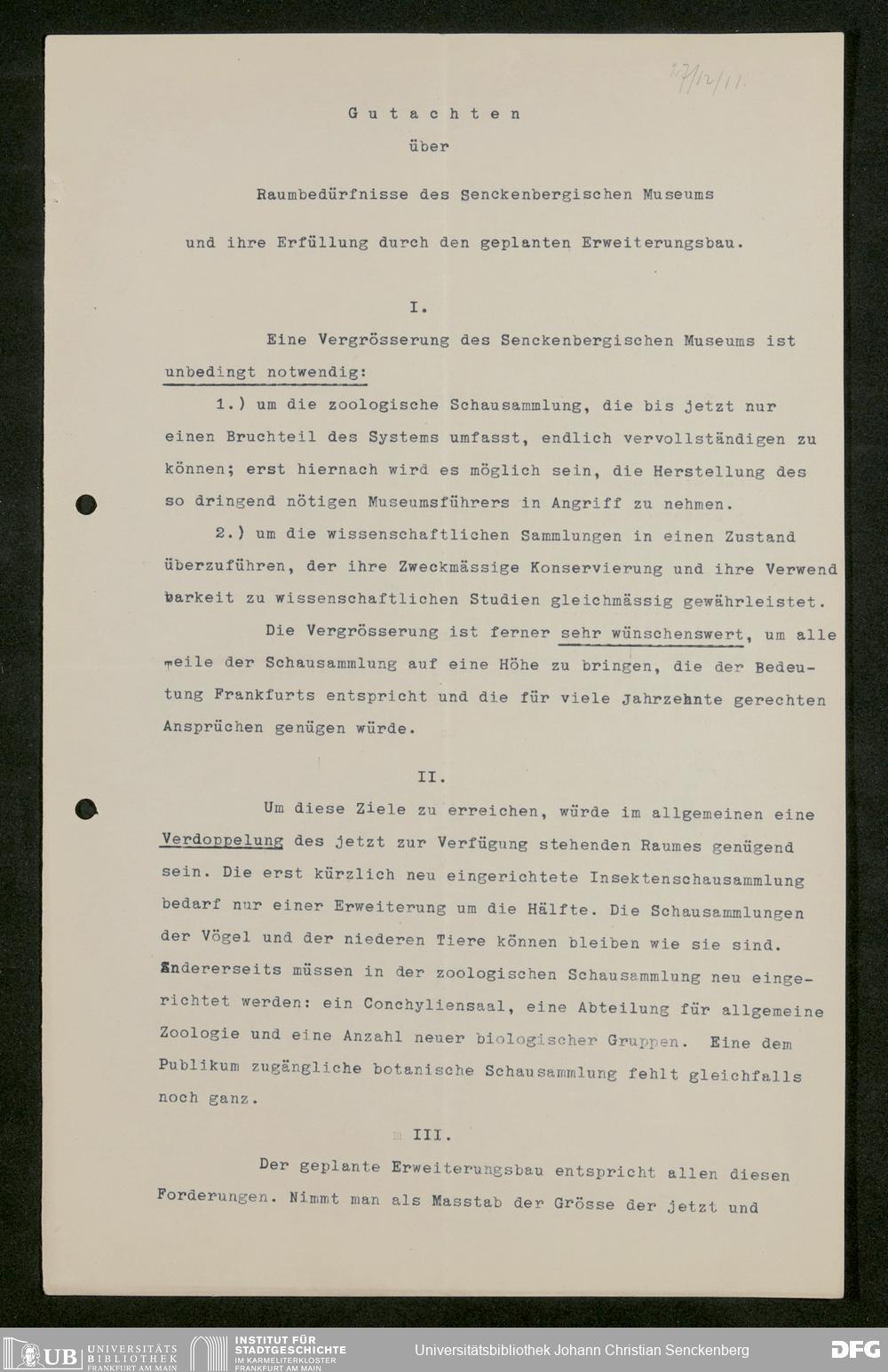 V176 Senckenberg Gesellschaft für Naturforschung, 611 - Vorbereitung der Gründung der Universität Frankfurt
