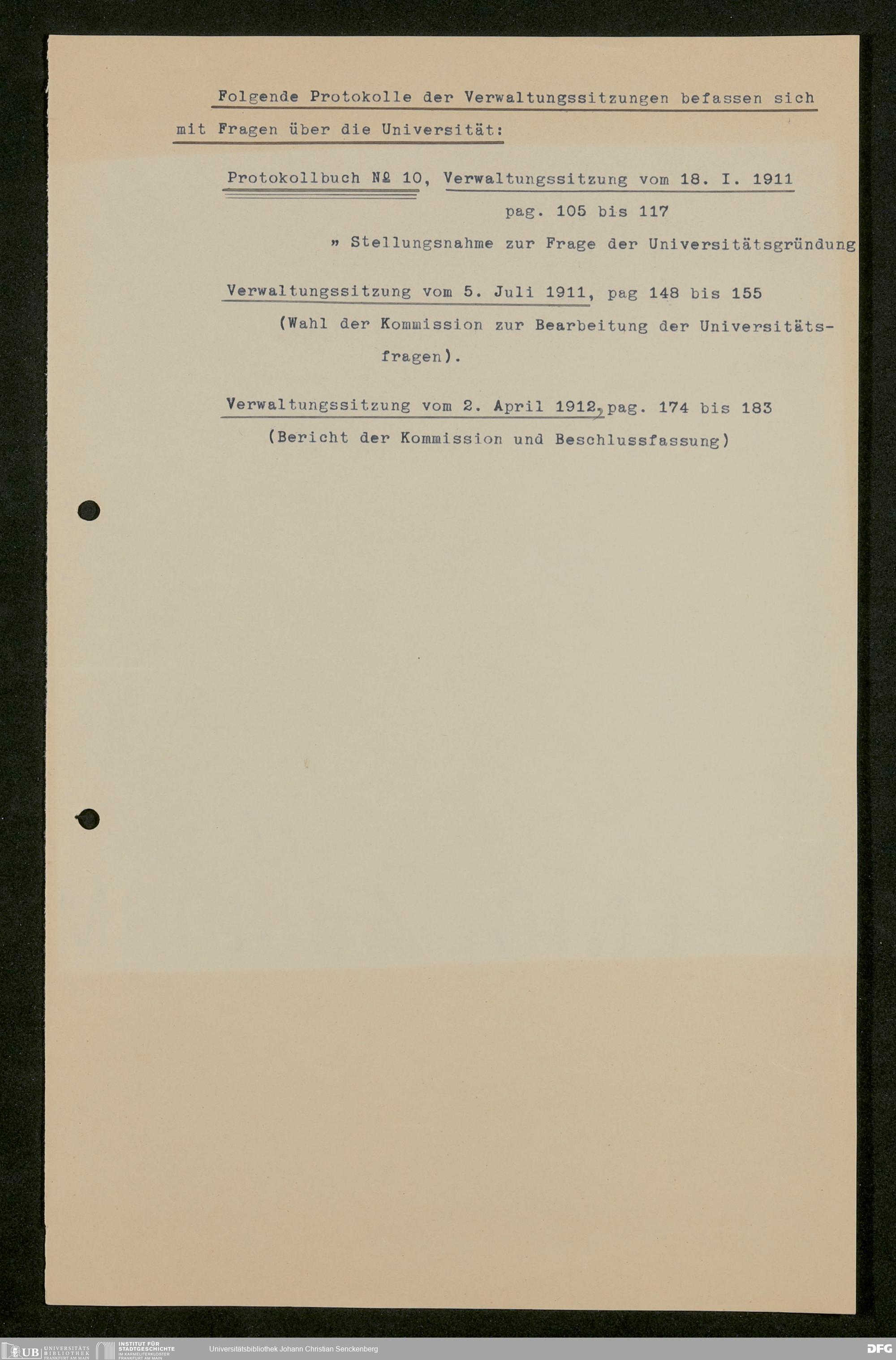 V176 Senckenberg Gesellschaft für Naturforschung, 611 - Vorbereitung der Gründung der Universität Frankfurt