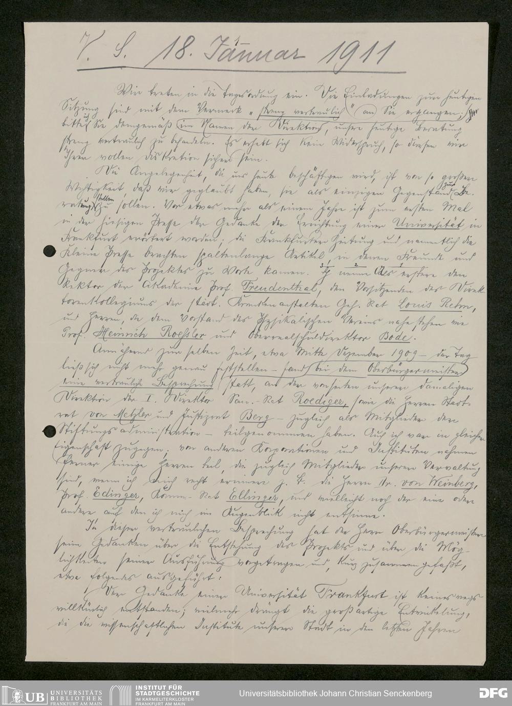 V176 Senckenberg Gesellschaft für Naturforschung, 611 - Vorbereitung der Gründung der Universität Frankfurt
