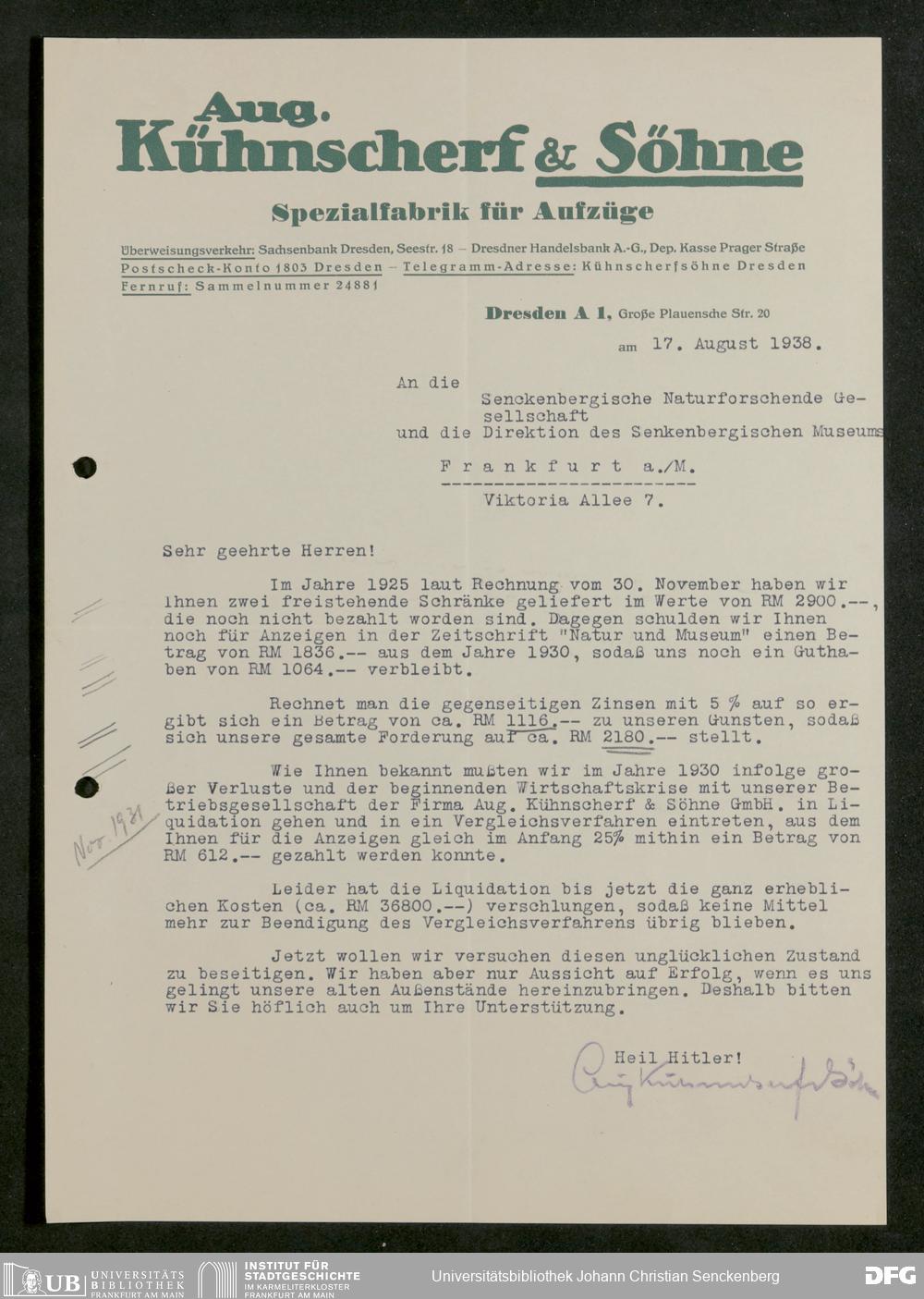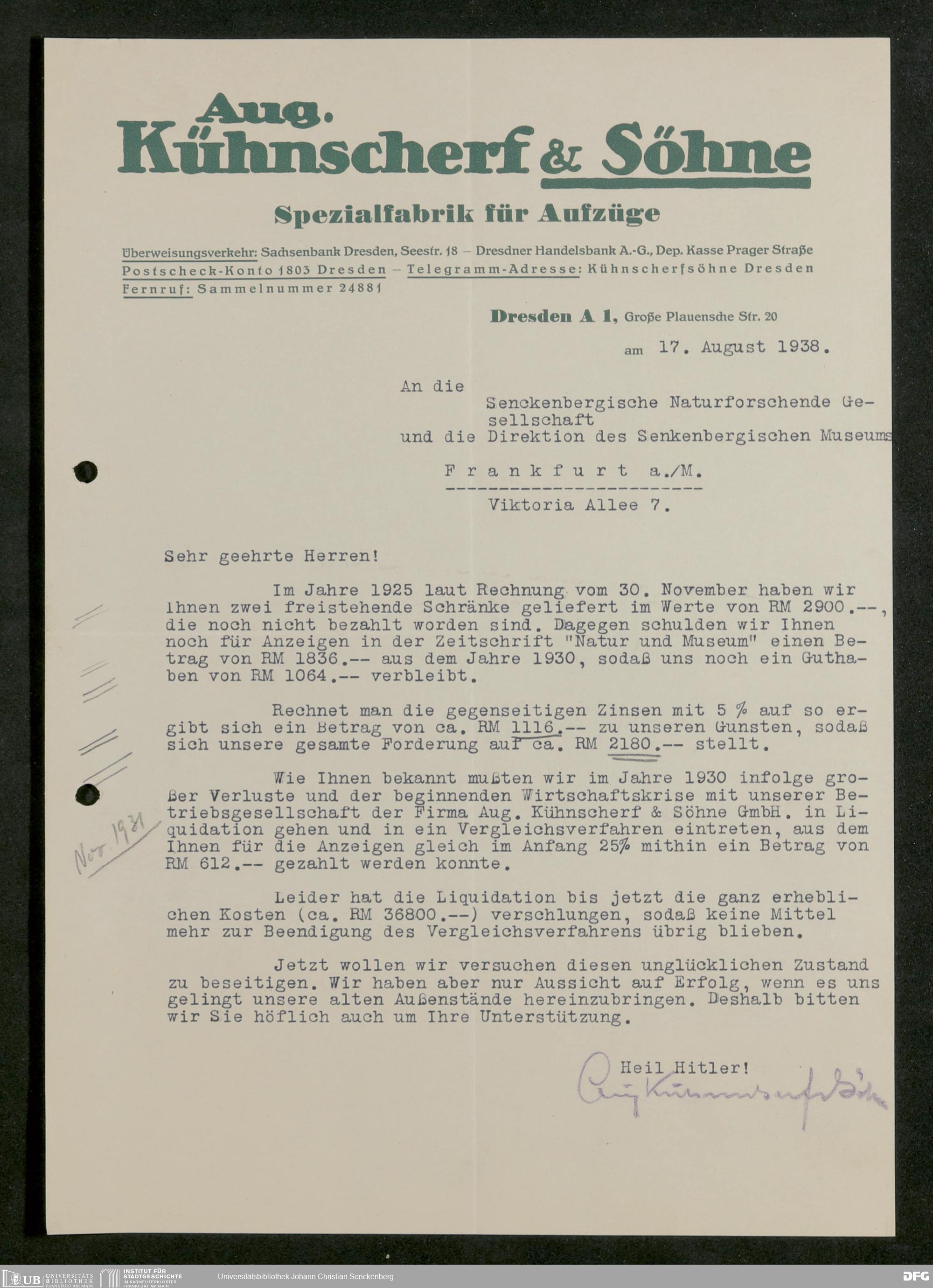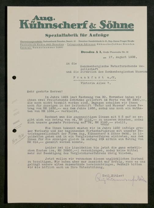 V176 Senckenberg Gesellschaft für Naturforschung, 614 - Ankauf von Museumsschränken bei der Firma August Kühnscherf und Söhne, Bd. 4