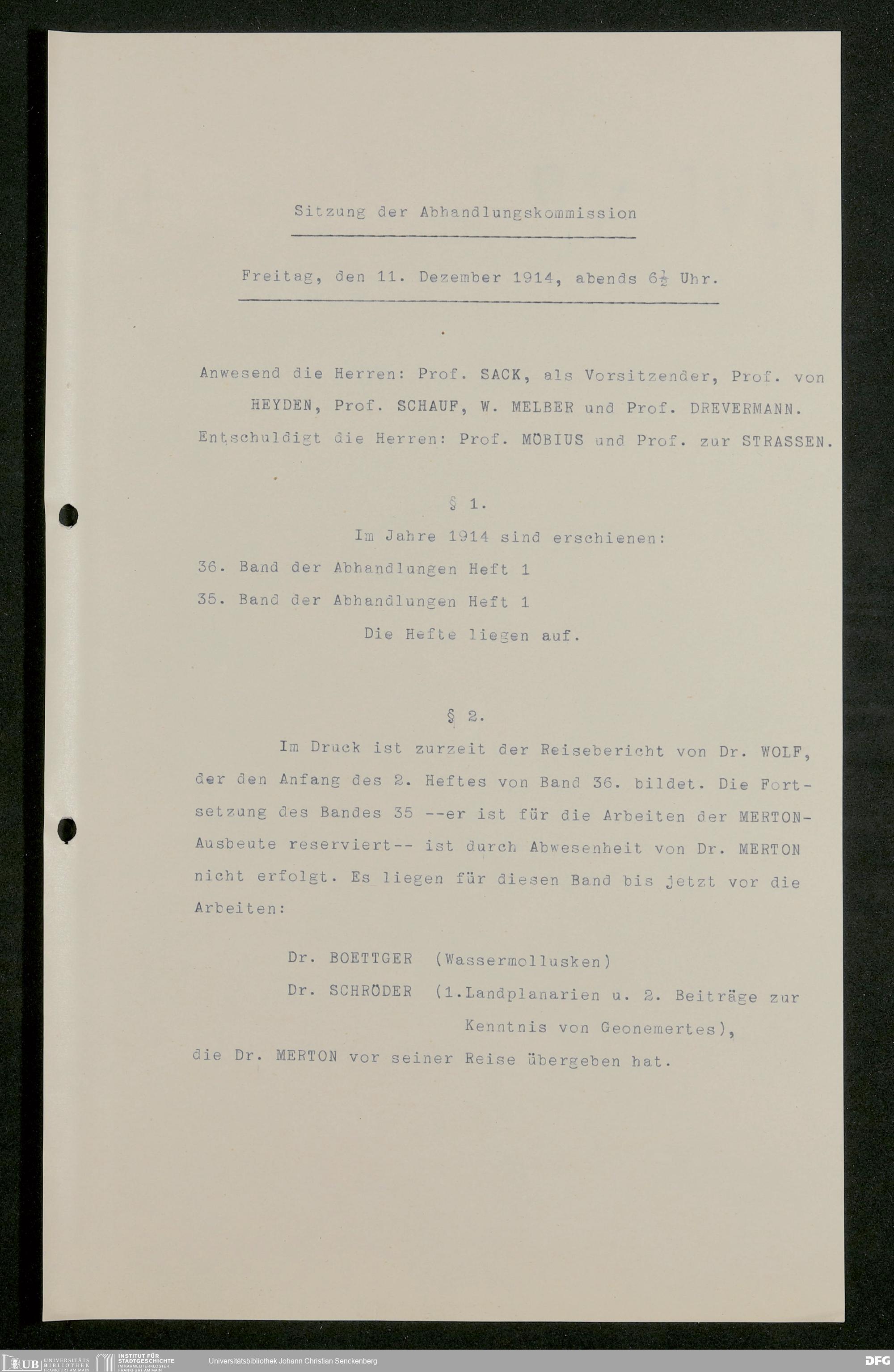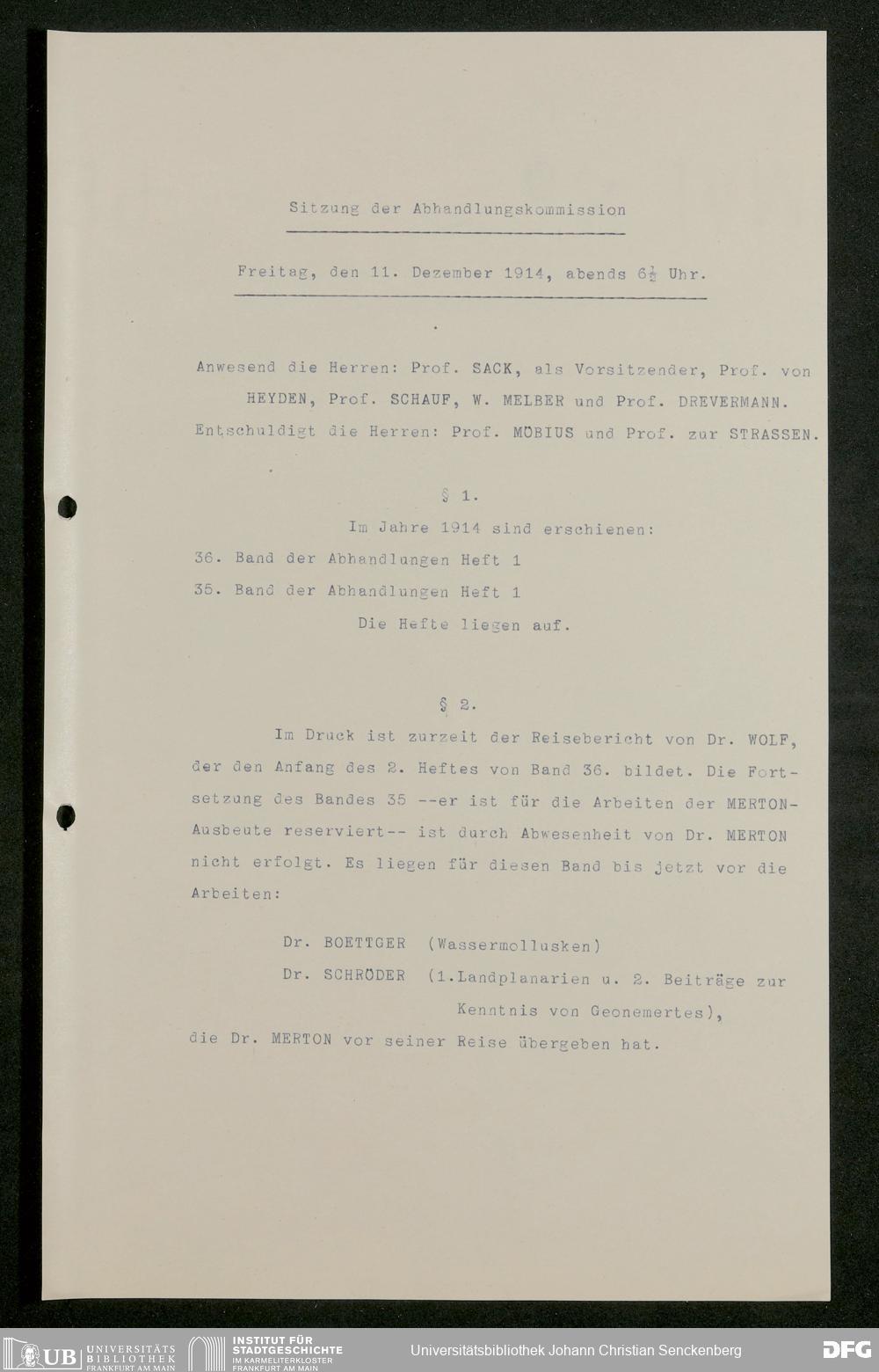 V176 Senckenberg Gesellschaft für Naturforschung, 626 - Sitzungsprotokolle der Kommission für die Herausgabe "Abhandlungen der Senckenbergischen Naturforschenden Gesellschaft"