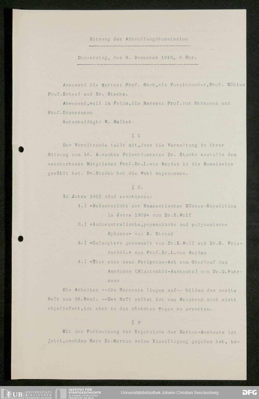 V176 Senckenberg Gesellschaft für Naturforschung, 626 - Sitzungsprotokolle der Kommission für die Herausgabe "Abhandlungen der Senckenbergischen Naturforschenden Gesellschaft"