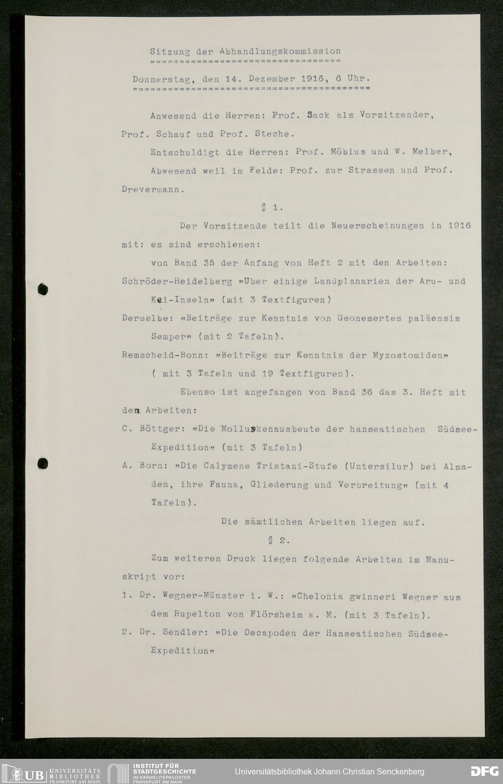 V176 Senckenberg Gesellschaft für Naturforschung, 626 - Sitzungsprotokolle der Kommission für die Herausgabe "Abhandlungen der Senckenbergischen Naturforschenden Gesellschaft"