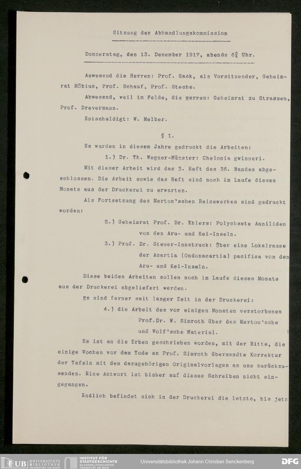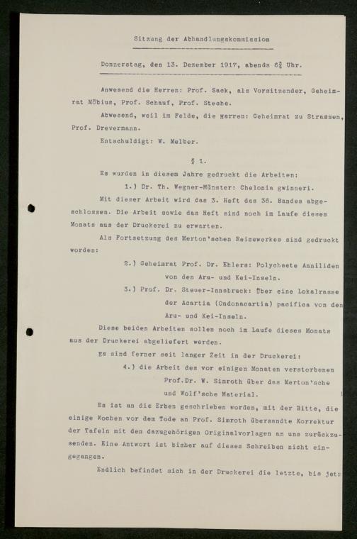 V176 Senckenberg Gesellschaft für Naturforschung, 626 - Sitzungsprotokolle der Kommission für die Herausgabe "Abhandlungen der Senckenbergischen Naturforschenden Gesellschaft"