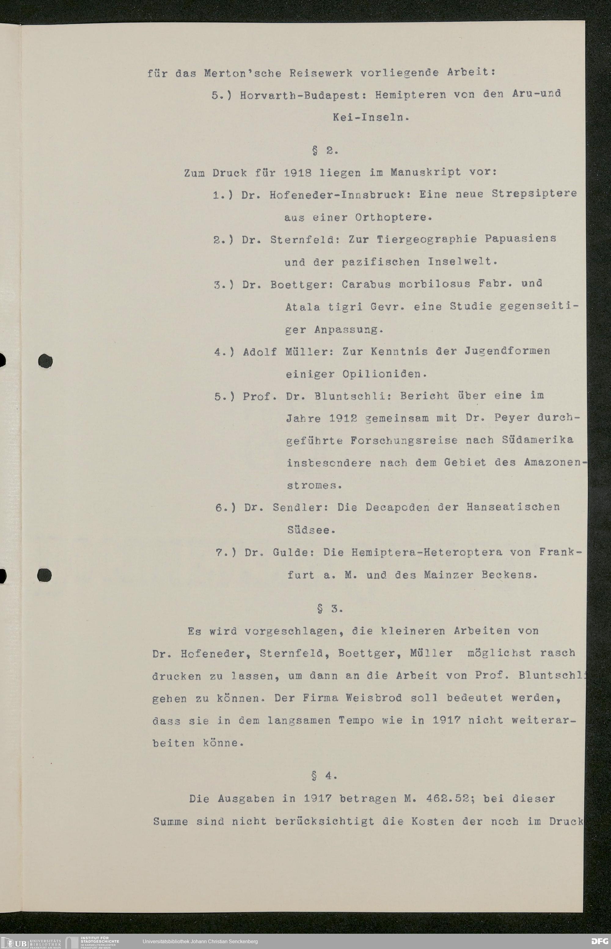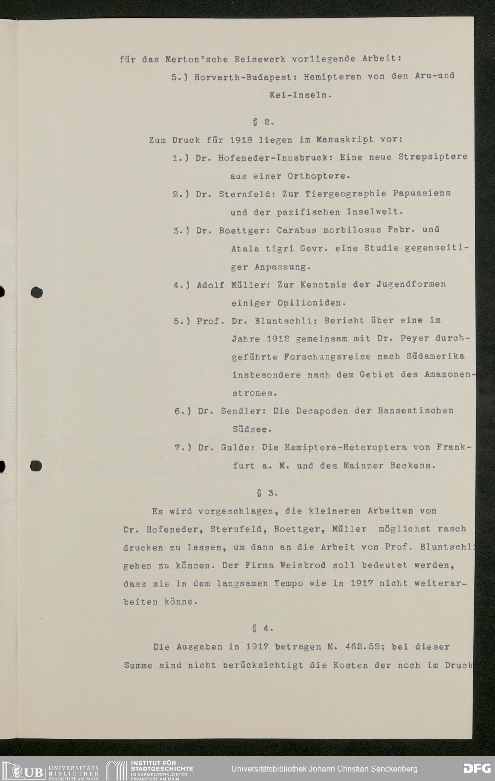 V176 Senckenberg Gesellschaft für Naturforschung, 626 - Sitzungsprotokolle der Kommission für die Herausgabe "Abhandlungen der Senckenbergischen Naturforschenden Gesellschaft"