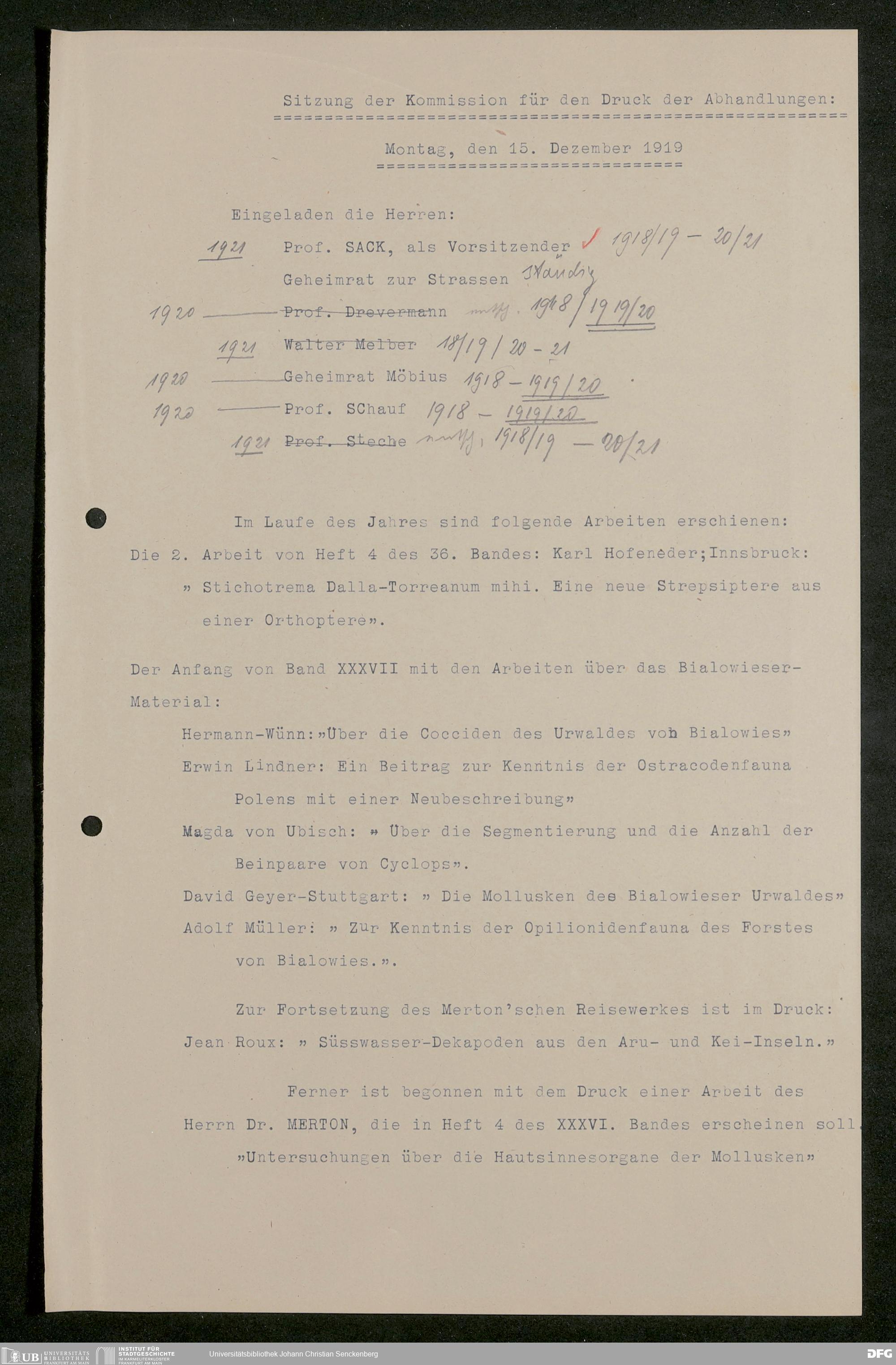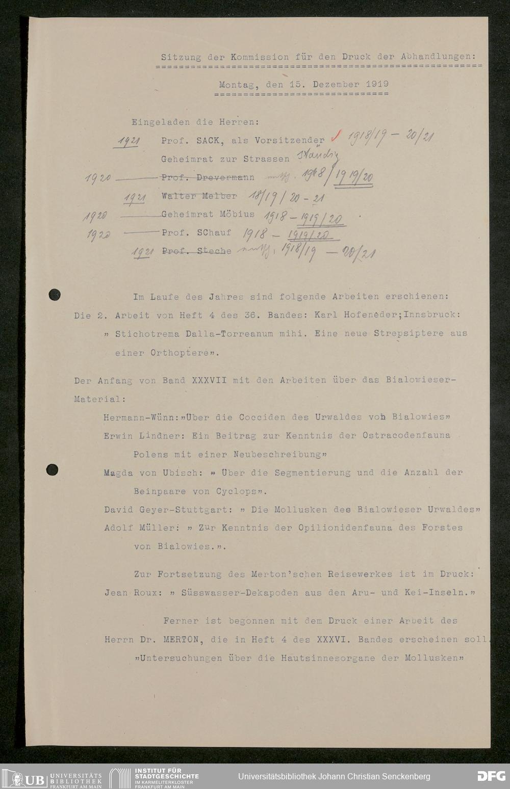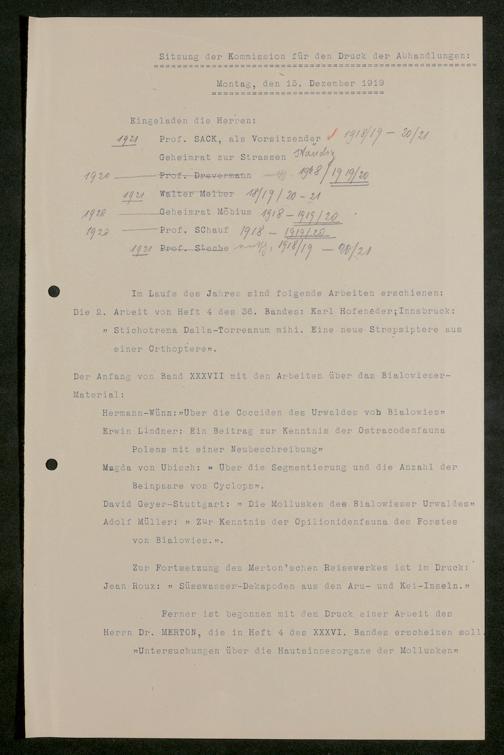 V176 Senckenberg Gesellschaft für Naturforschung, 626 - Sitzungsprotokolle der Kommission für die Herausgabe "Abhandlungen der Senckenbergischen Naturforschenden Gesellschaft"
