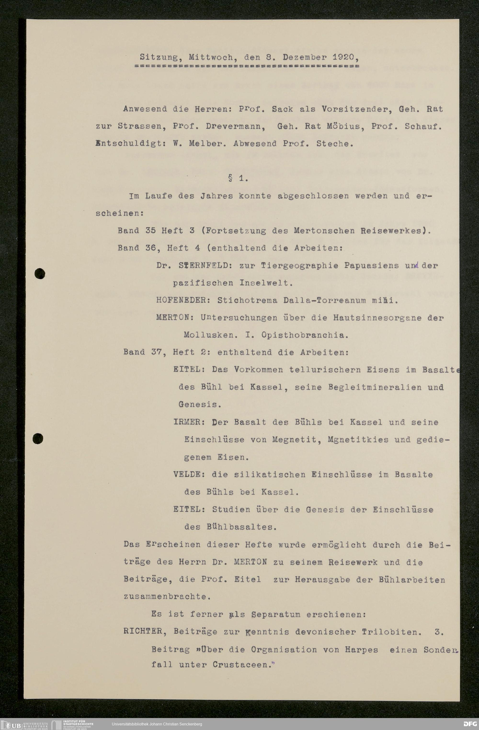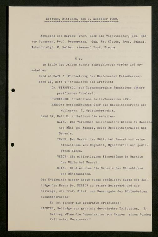 V176 Senckenberg Gesellschaft für Naturforschung, 626 - Sitzungsprotokolle der Kommission für die Herausgabe "Abhandlungen der Senckenbergischen Naturforschenden Gesellschaft"