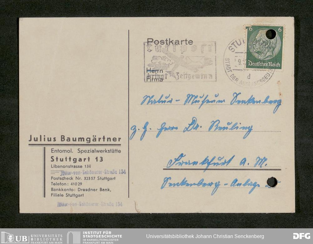 V176 Senckenberg Gesellschaft für Naturforschung, 627 - Korrespondenz der entomologischen Abteilung
