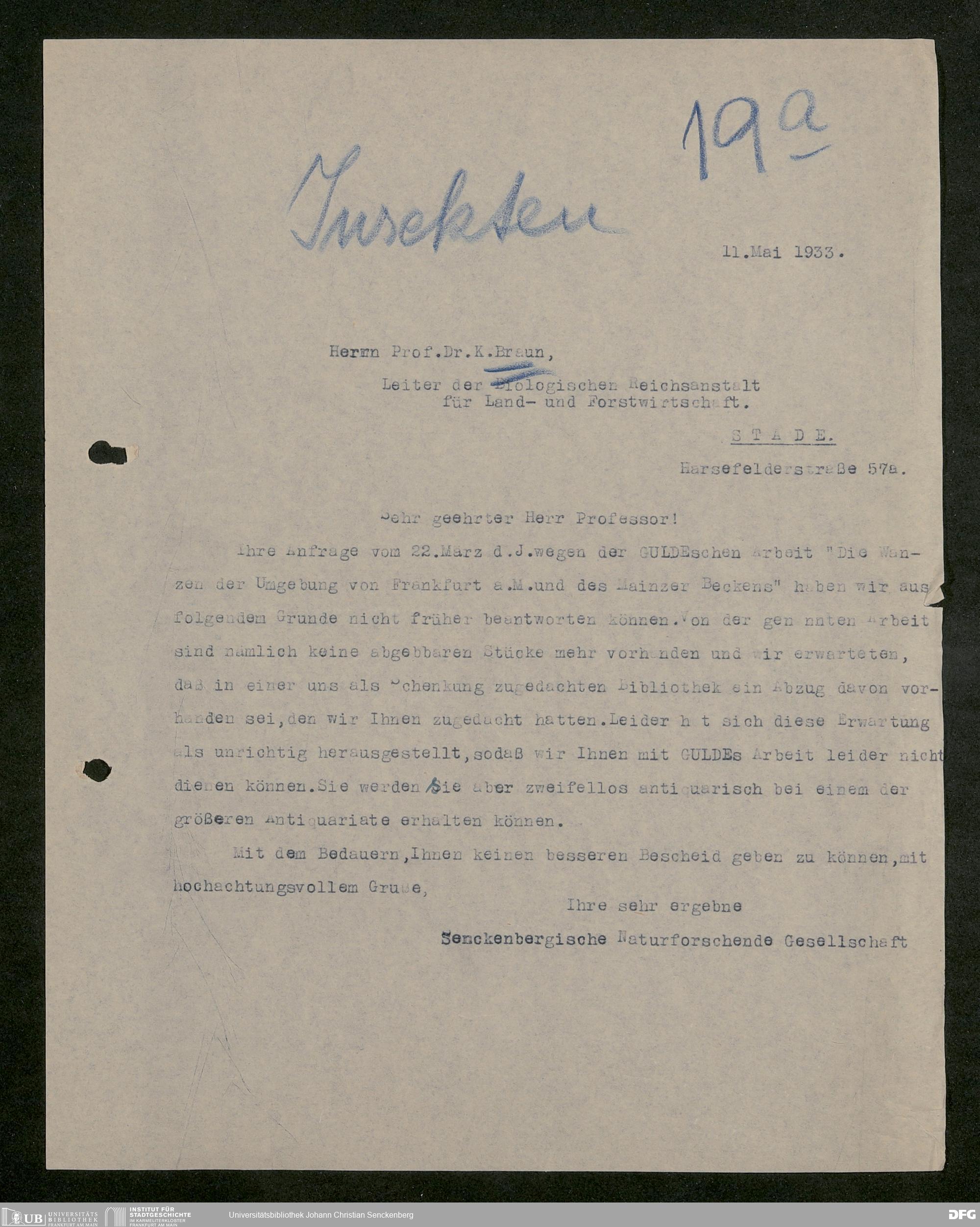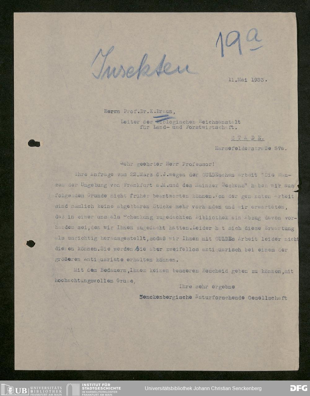 V176 Senckenberg Gesellschaft für Naturforschung, 627 - Korrespondenz der entomologischen Abteilung
