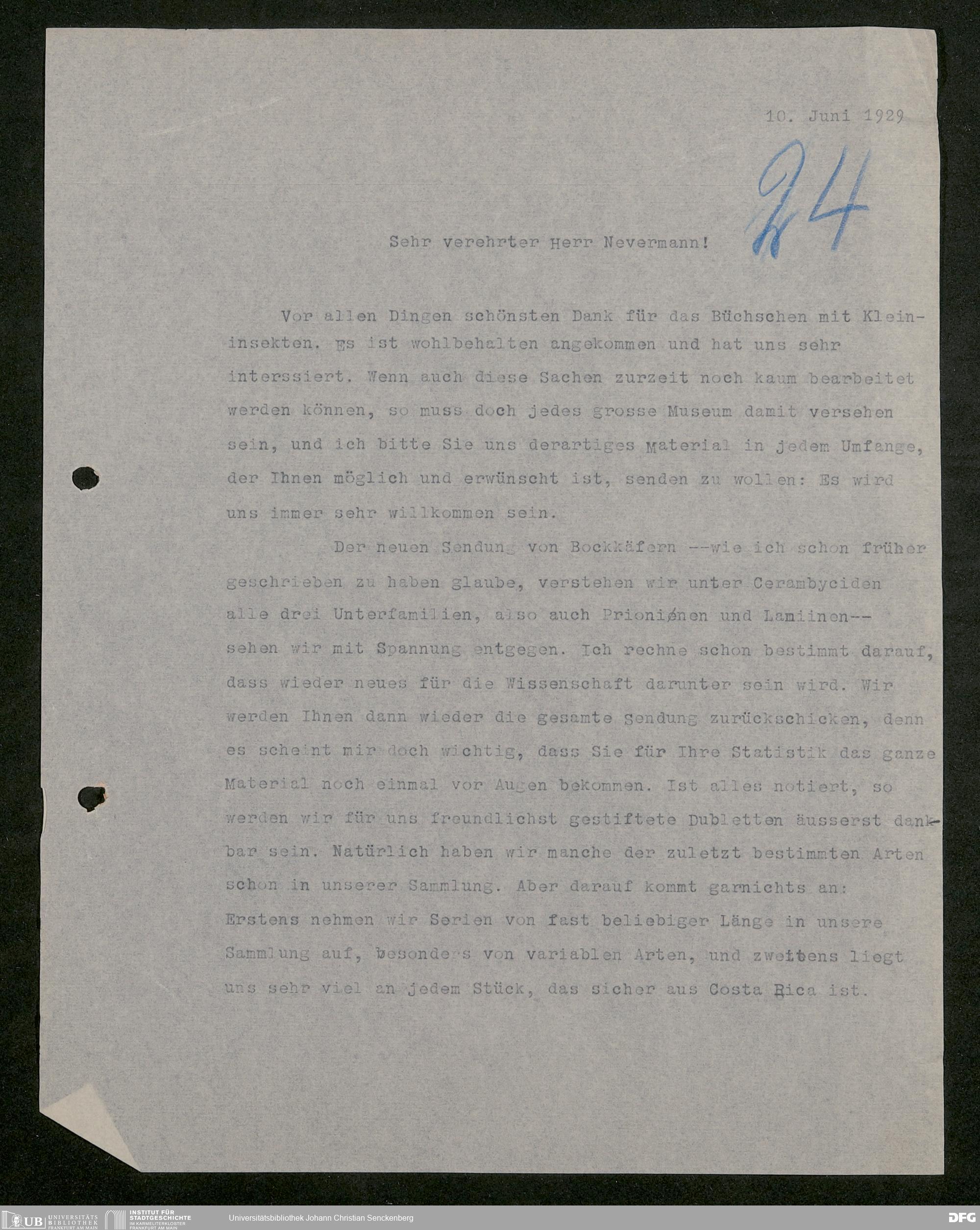 V176 Senckenberg Gesellschaft für Naturforschung, 627 - Korrespondenz der entomologischen Abteilung