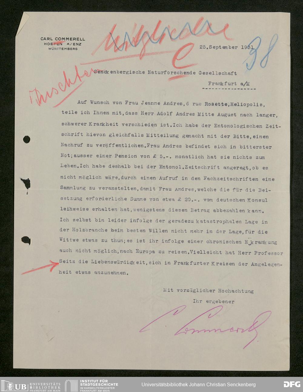 V176 Senckenberg Gesellschaft für Naturforschung, 627 - Korrespondenz der entomologischen Abteilung