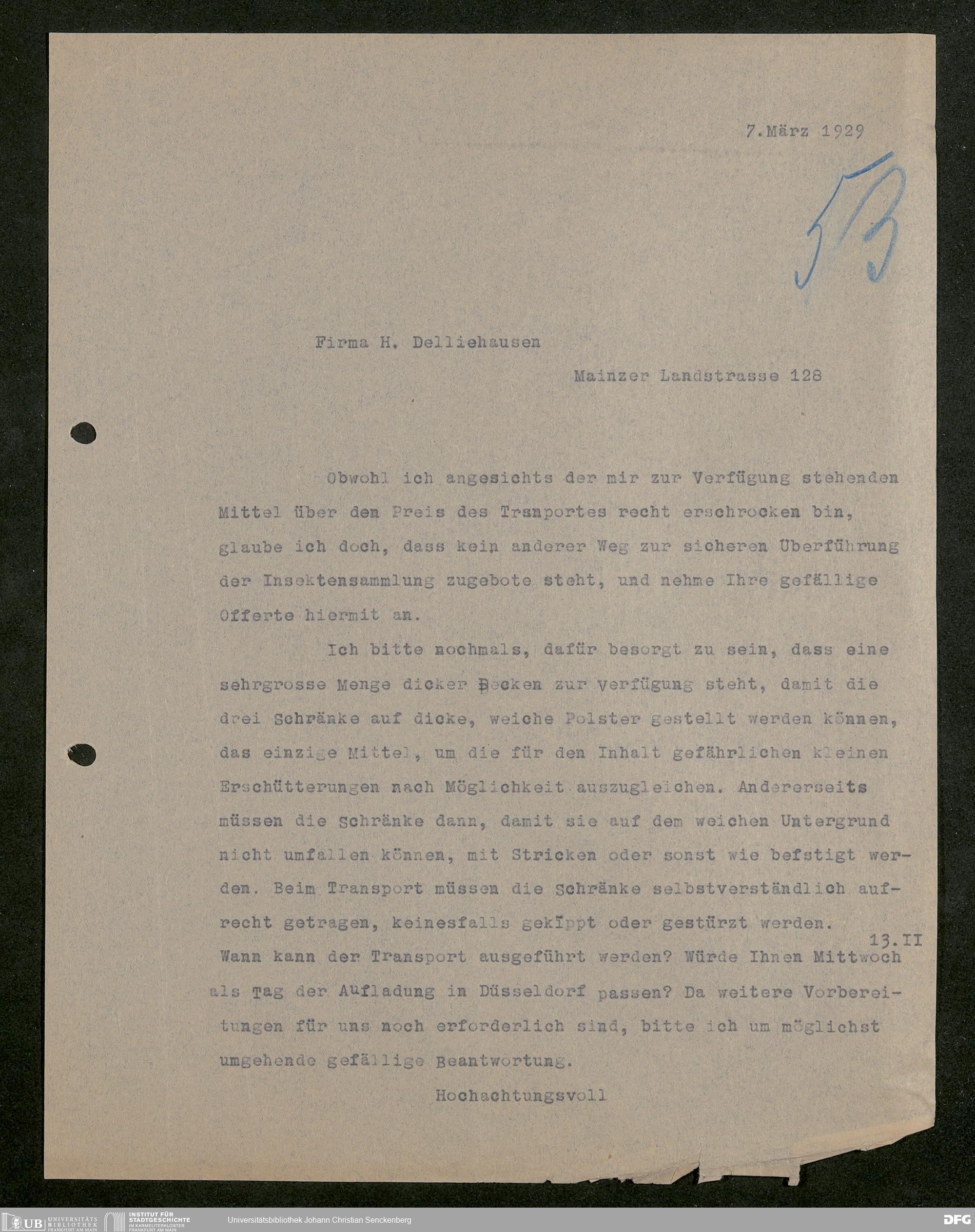 V176 Senckenberg Gesellschaft für Naturforschung, 627 - Korrespondenz der entomologischen Abteilung