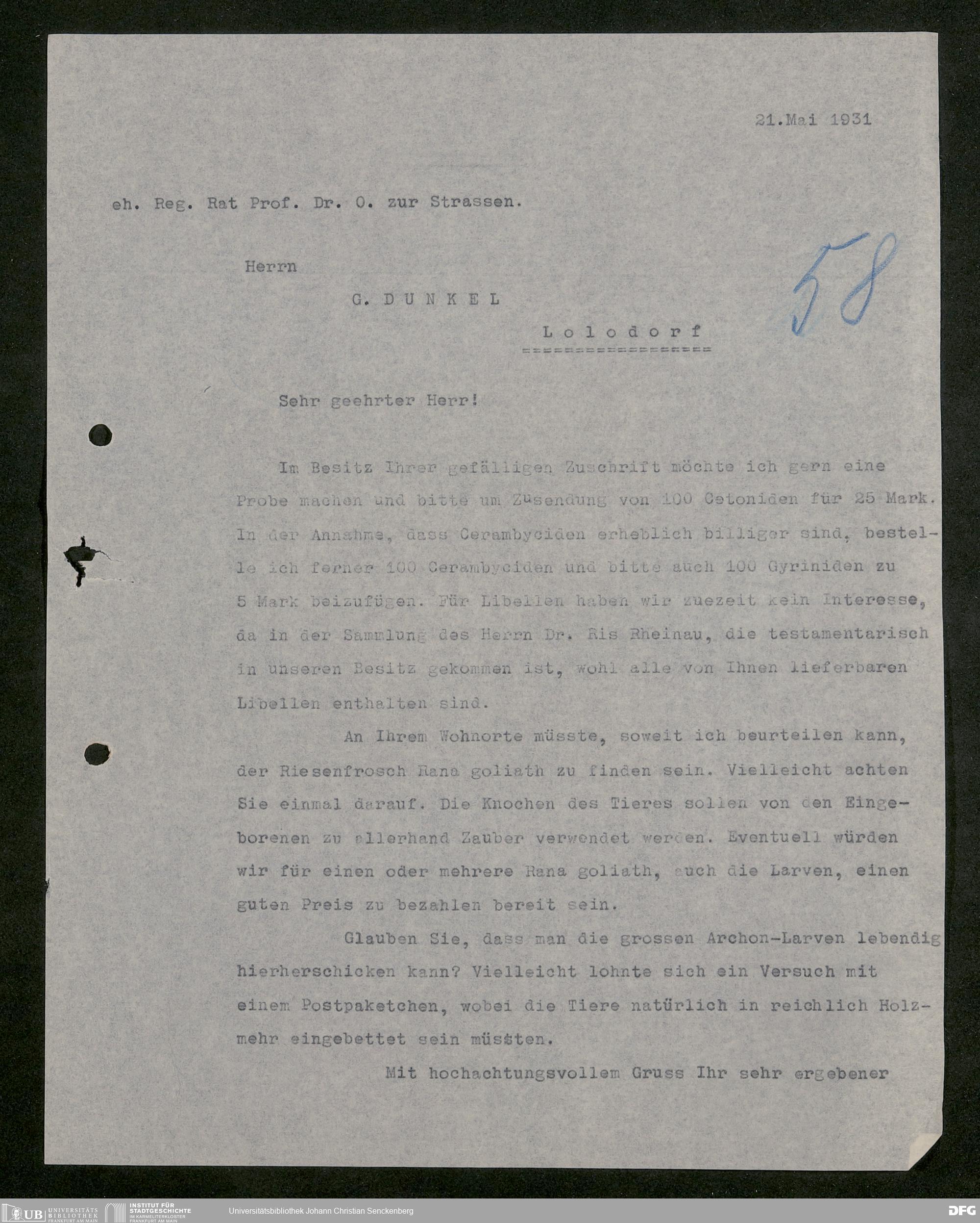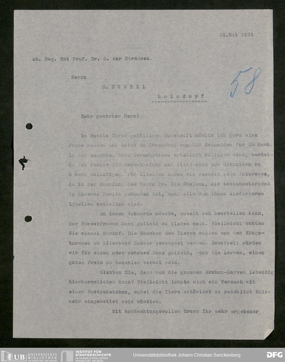 V176 Senckenberg Gesellschaft für Naturforschung, 627 - Korrespondenz der entomologischen Abteilung