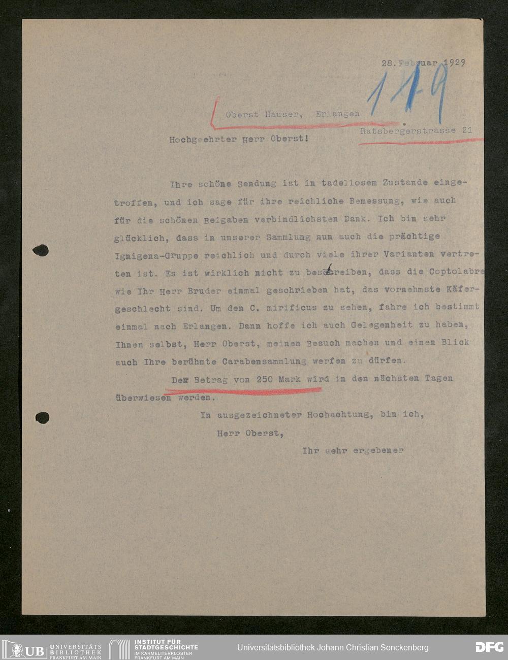 V176 Senckenberg Gesellschaft für Naturforschung, 627 - Korrespondenz der entomologischen Abteilung