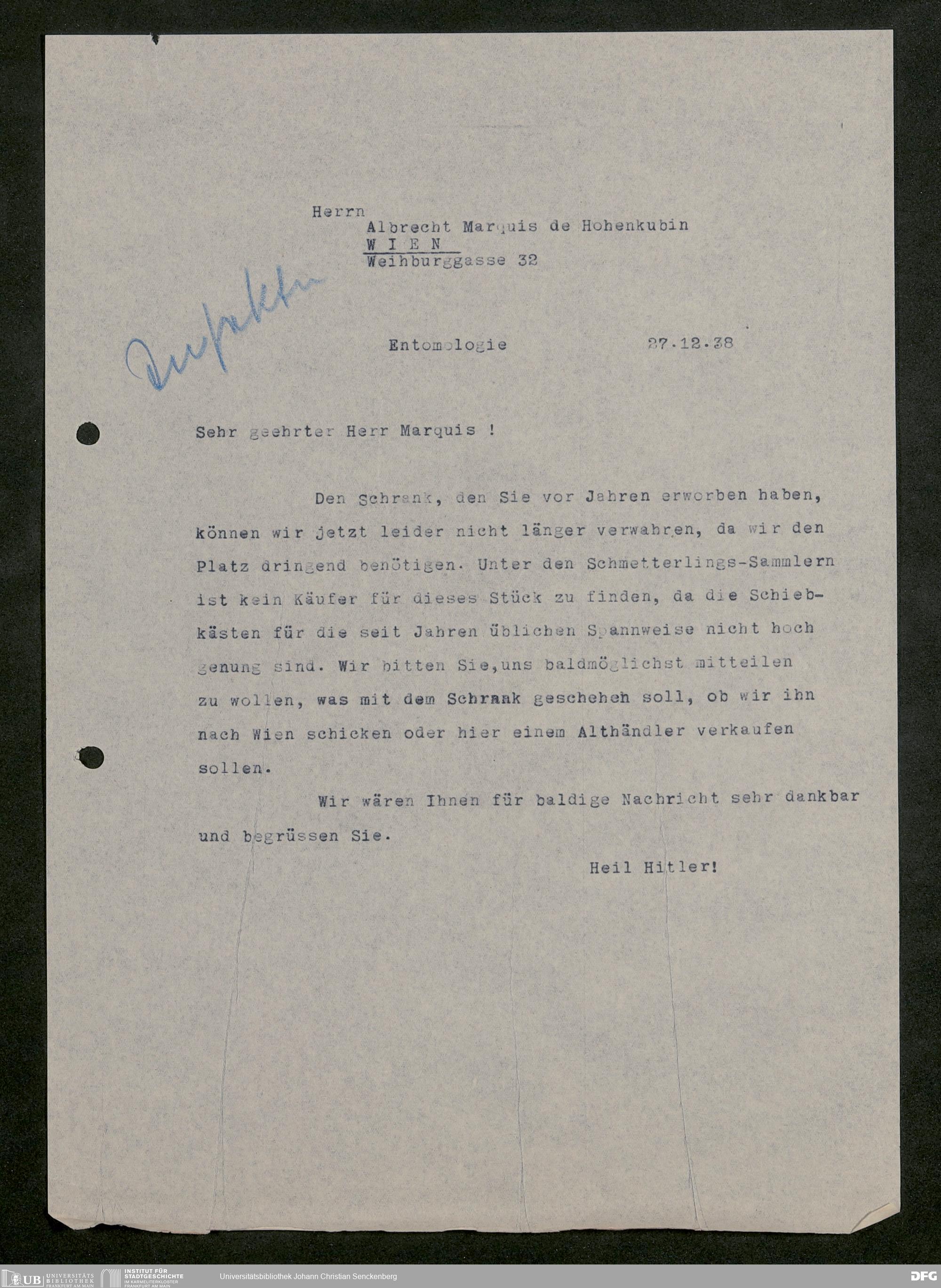 V176 Senckenberg Gesellschaft für Naturforschung, 627 - Korrespondenz der entomologischen Abteilung
