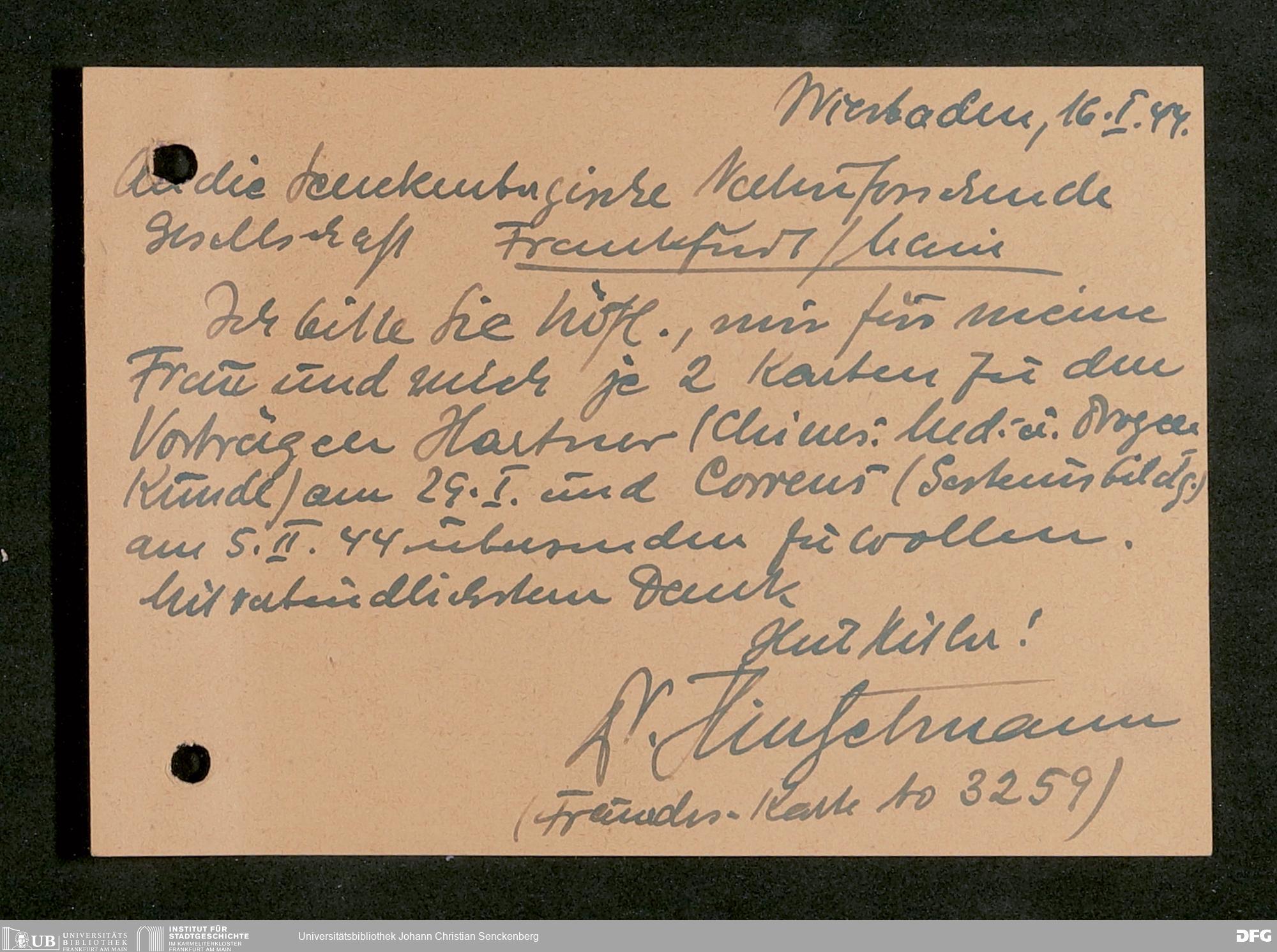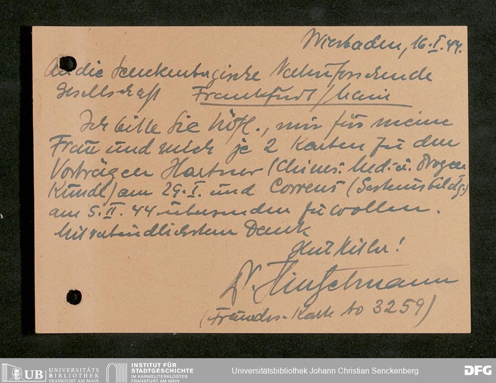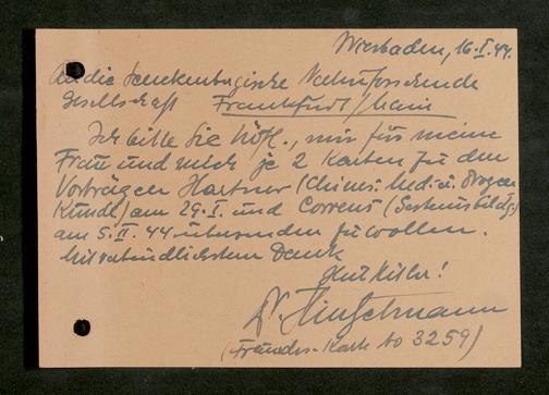 V176 Senckenberg Gesellschaft für Naturforschung, 641 - Vergabe von Freikarten zur Vorlesungen und Vorträgen der Senckenbergischen Naturforschenden Gesellschaft an Firmen, Lazarette und Schulen