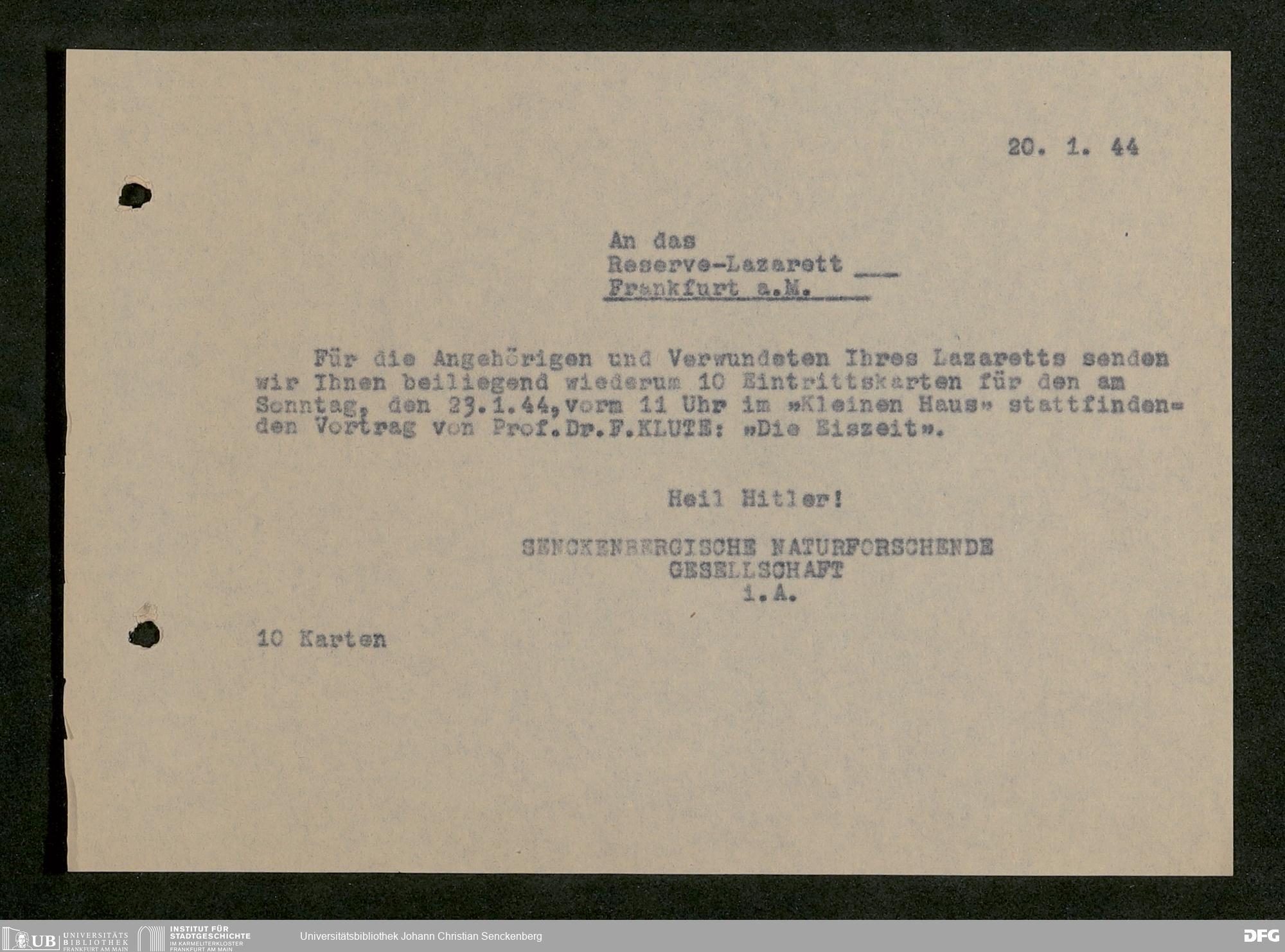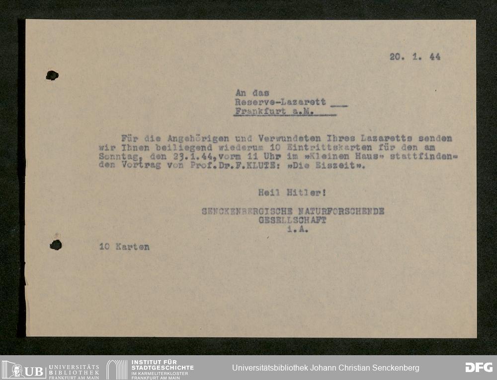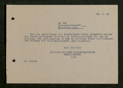 V176 Senckenberg Gesellschaft für Naturforschung, 641 - Vergabe von Freikarten zur Vorlesungen und Vorträgen der Senckenbergischen Naturforschenden Gesellschaft an Firmen, Lazarette und Schulen