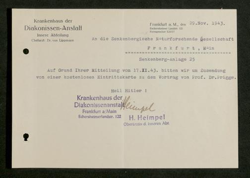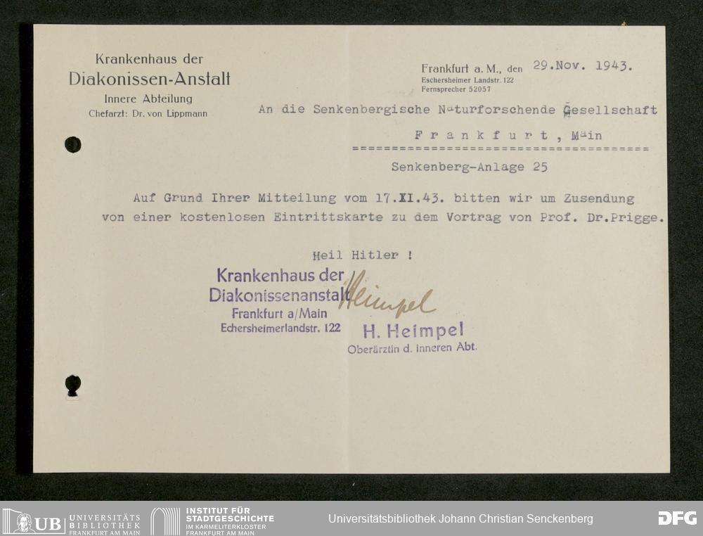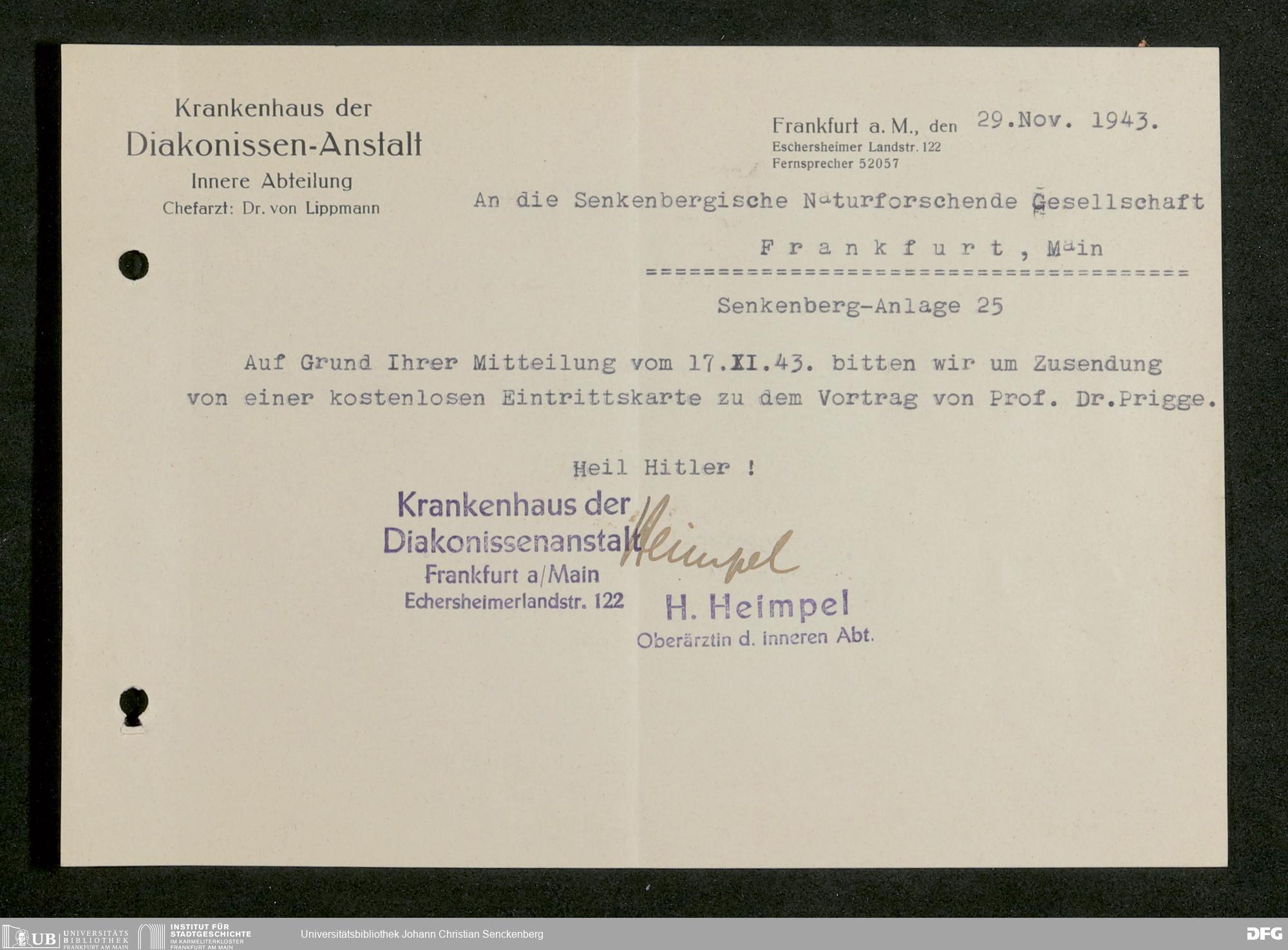 V176 Senckenberg Gesellschaft für Naturforschung, 641 - Vergabe von Freikarten zur Vorlesungen und Vorträgen der Senckenbergischen Naturforschenden Gesellschaft an Firmen, Lazarette und Schulen