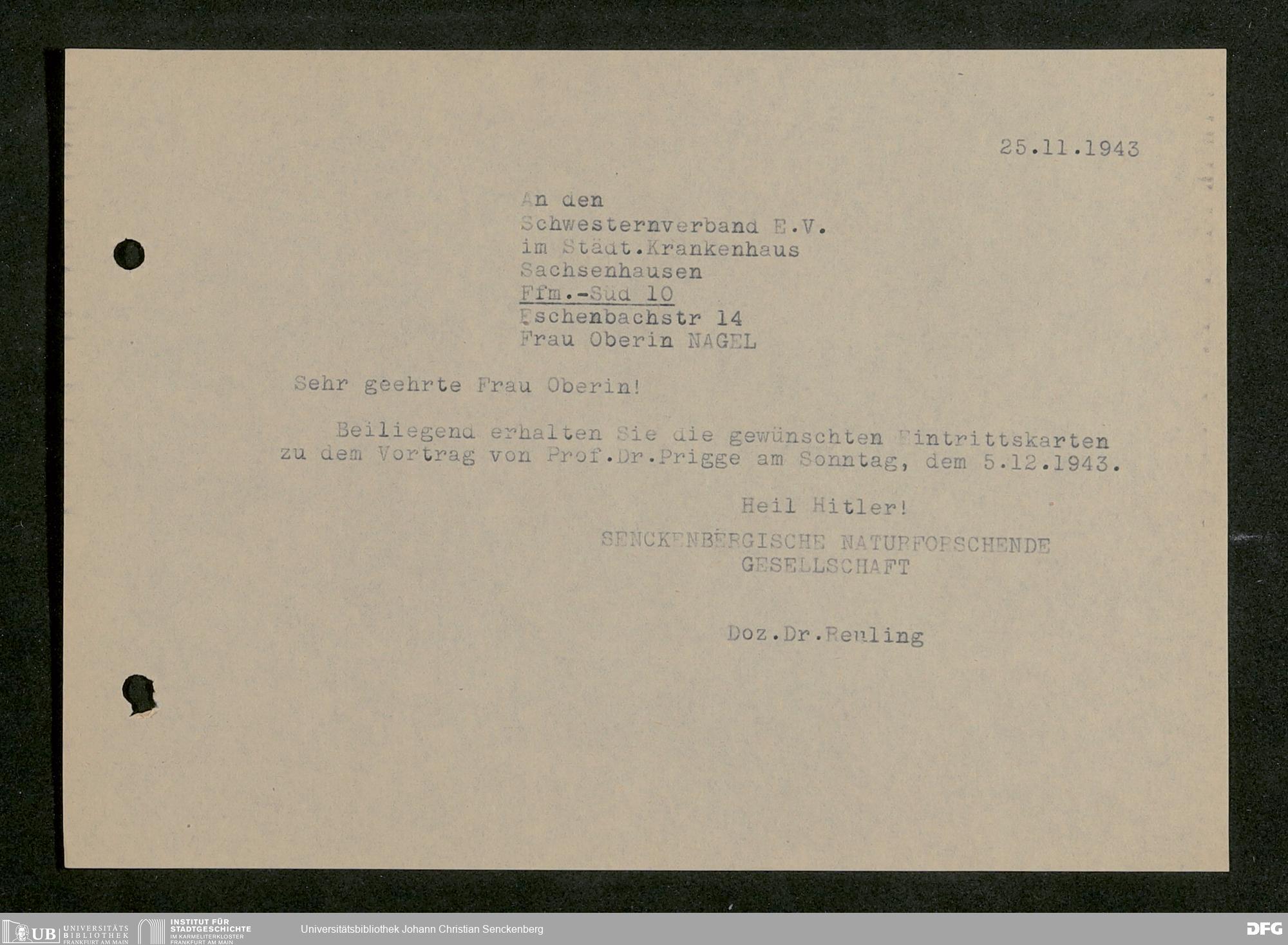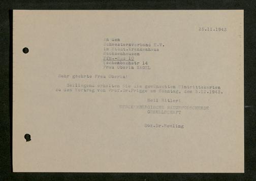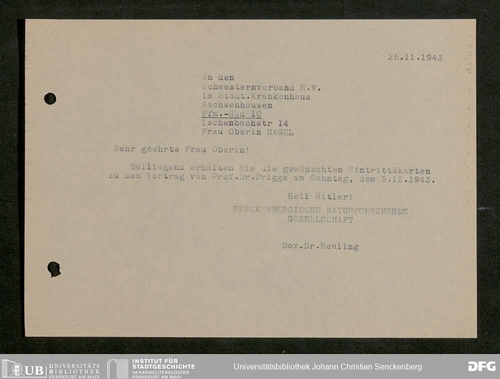 V176 Senckenberg Gesellschaft für Naturforschung, 641 - Vergabe von Freikarten zur Vorlesungen und Vorträgen der Senckenbergischen Naturforschenden Gesellschaft an Firmen, Lazarette und Schulen