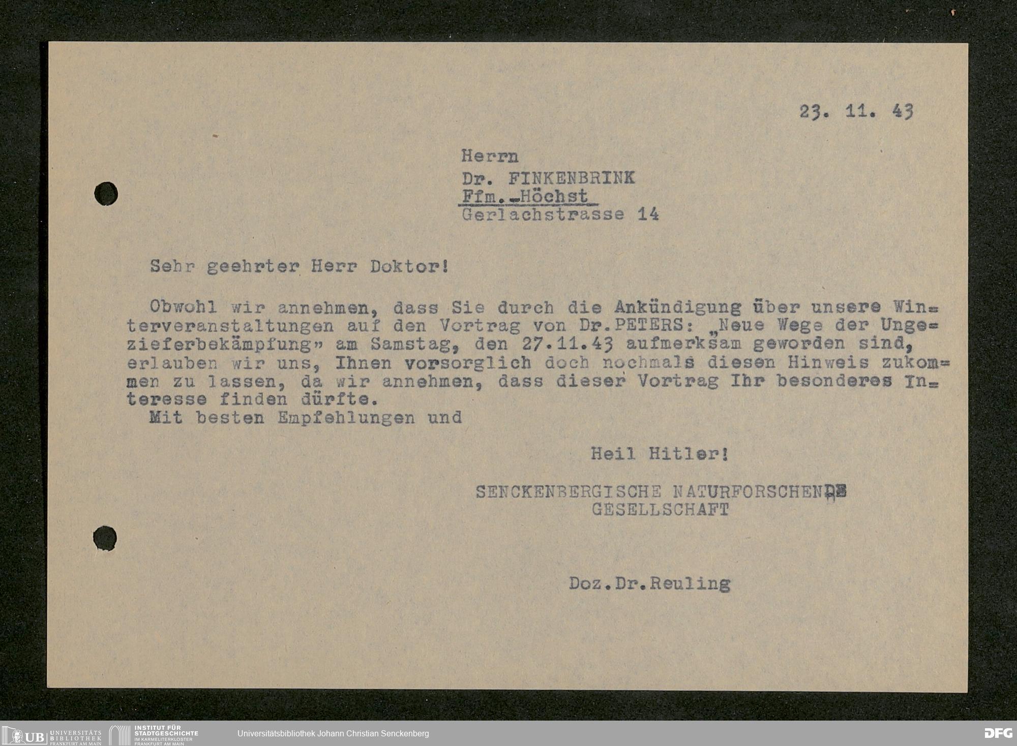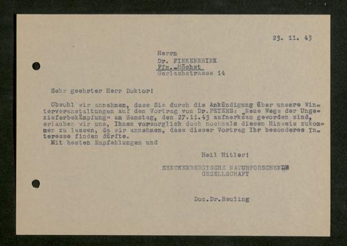 V176 Senckenberg Gesellschaft für Naturforschung, 641 - Vergabe von Freikarten zur Vorlesungen und Vorträgen der Senckenbergischen Naturforschenden Gesellschaft an Firmen, Lazarette und Schulen