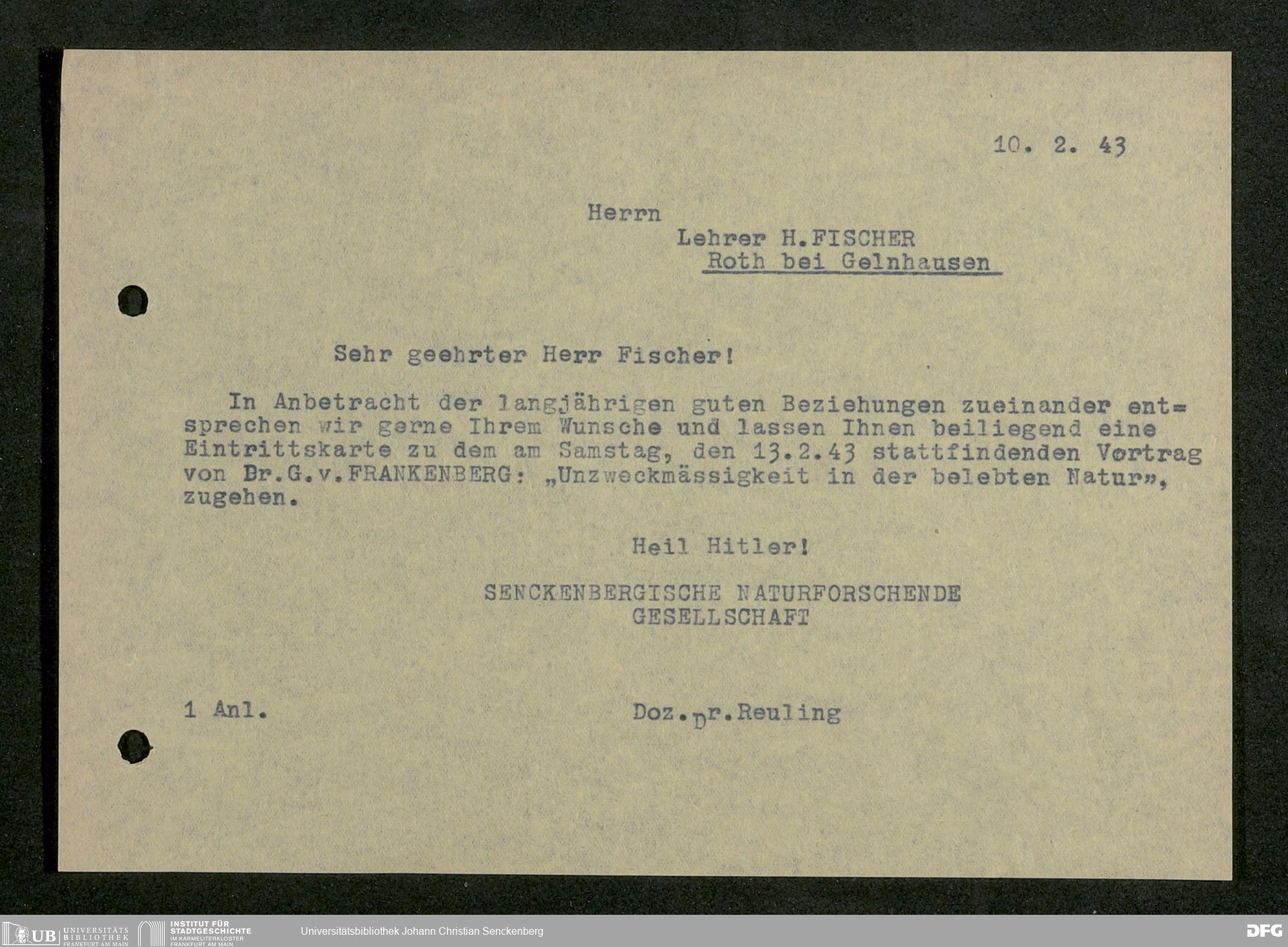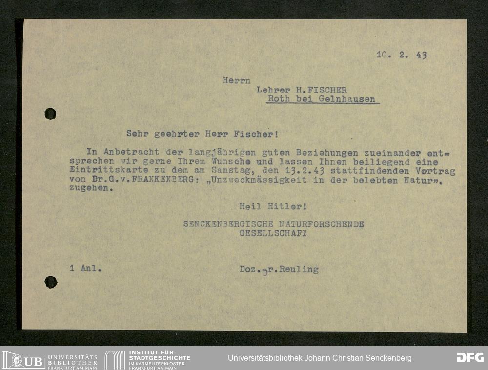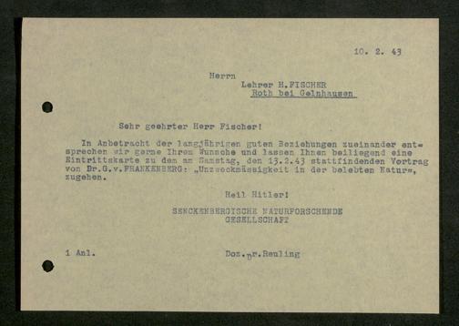 V176 Senckenberg Gesellschaft für Naturforschung, 641 - Vergabe von Freikarten zur Vorlesungen und Vorträgen der Senckenbergischen Naturforschenden Gesellschaft an Firmen, Lazarette und Schulen