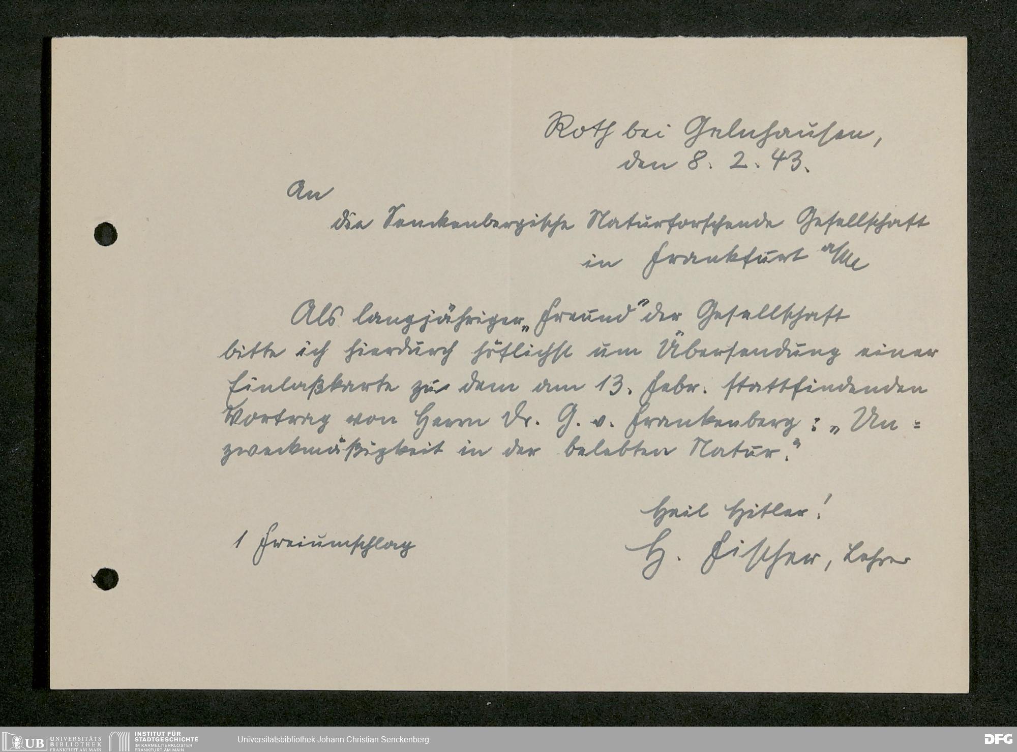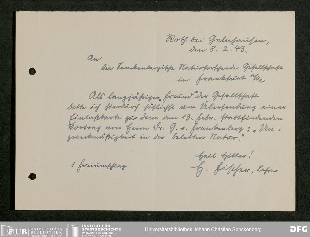 V176 Senckenberg Gesellschaft für Naturforschung, 641 - Vergabe von Freikarten zur Vorlesungen und Vorträgen der Senckenbergischen Naturforschenden Gesellschaft an Firmen, Lazarette und Schulen