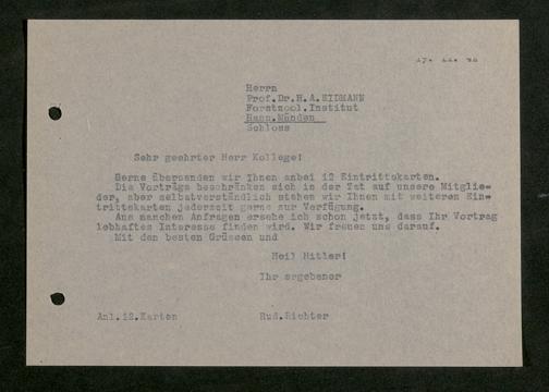 V176 Senckenberg Gesellschaft für Naturforschung, 641 - Vergabe von Freikarten zur Vorlesungen und Vorträgen der Senckenbergischen Naturforschenden Gesellschaft an Firmen, Lazarette und Schulen