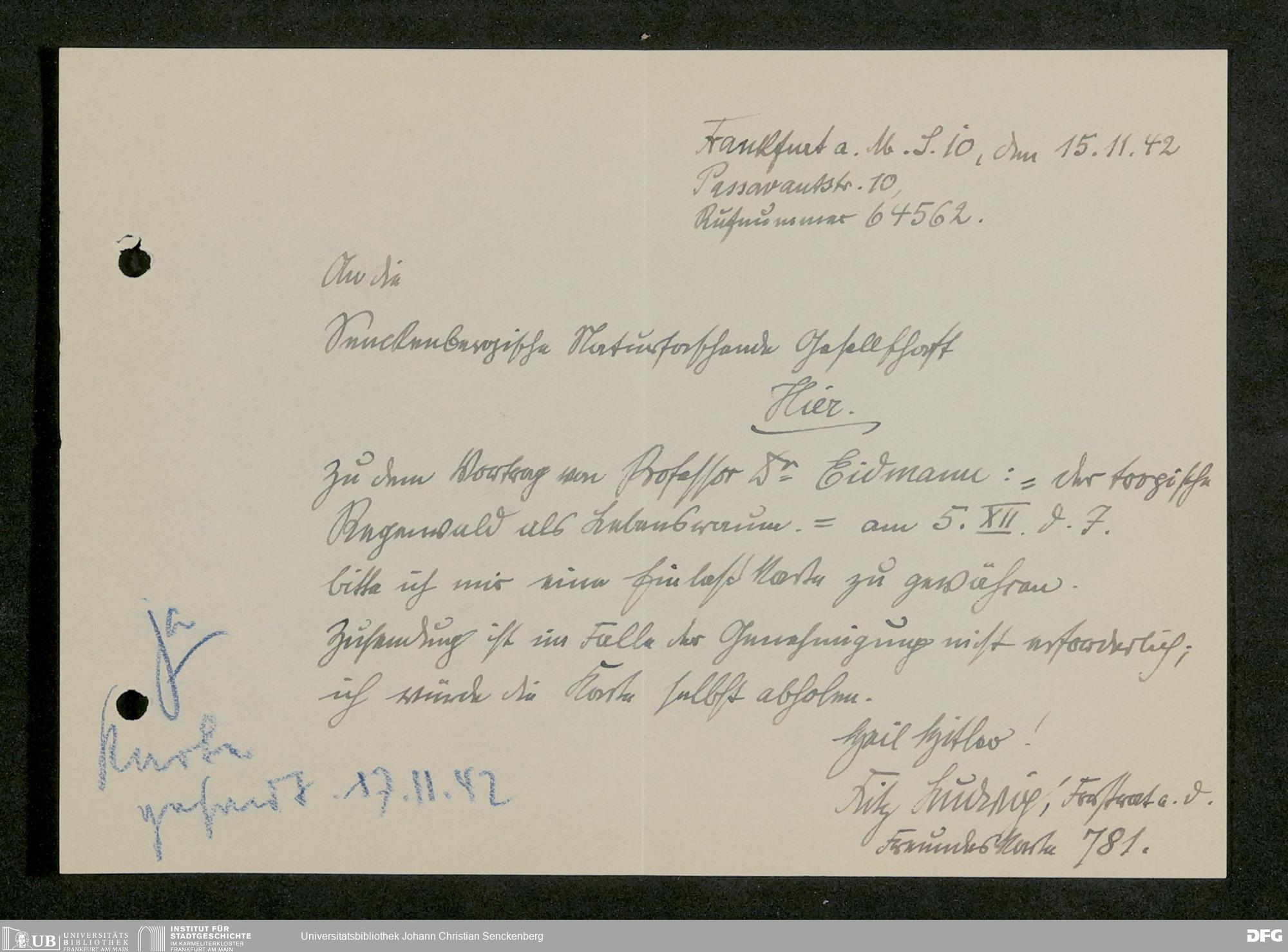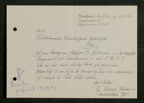 V176 Senckenberg Gesellschaft für Naturforschung, 641 - Vergabe von Freikarten zur Vorlesungen und Vorträgen der Senckenbergischen Naturforschenden Gesellschaft an Firmen, Lazarette und Schulen