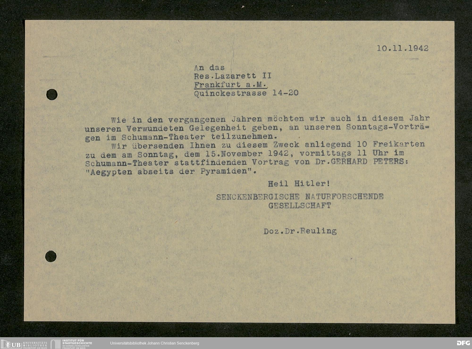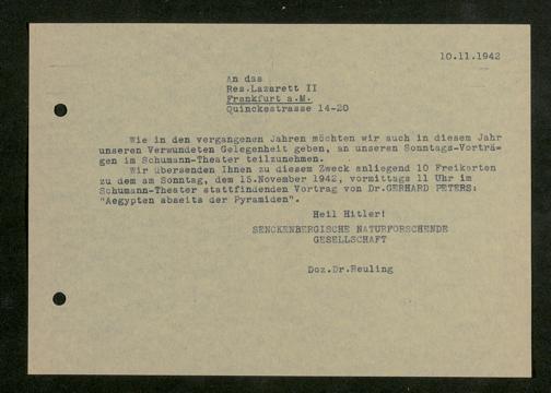 V176 Senckenberg Gesellschaft für Naturforschung, 641 - Vergabe von Freikarten zur Vorlesungen und Vorträgen der Senckenbergischen Naturforschenden Gesellschaft an Firmen, Lazarette und Schulen