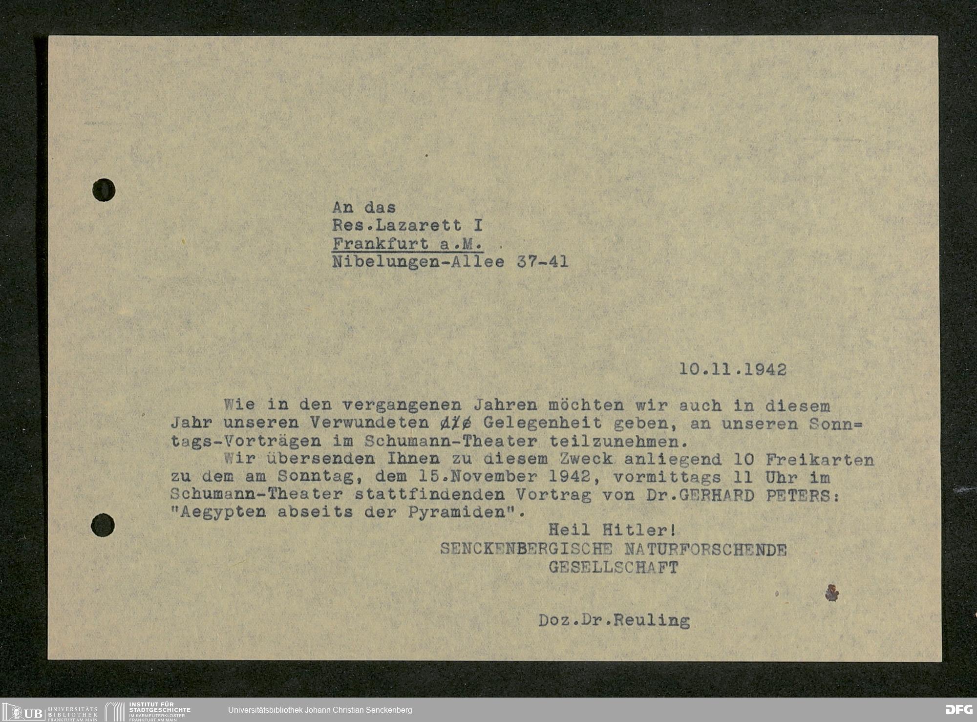 V176 Senckenberg Gesellschaft für Naturforschung, 641 - Vergabe von Freikarten zur Vorlesungen und Vorträgen der Senckenbergischen Naturforschenden Gesellschaft an Firmen, Lazarette und Schulen