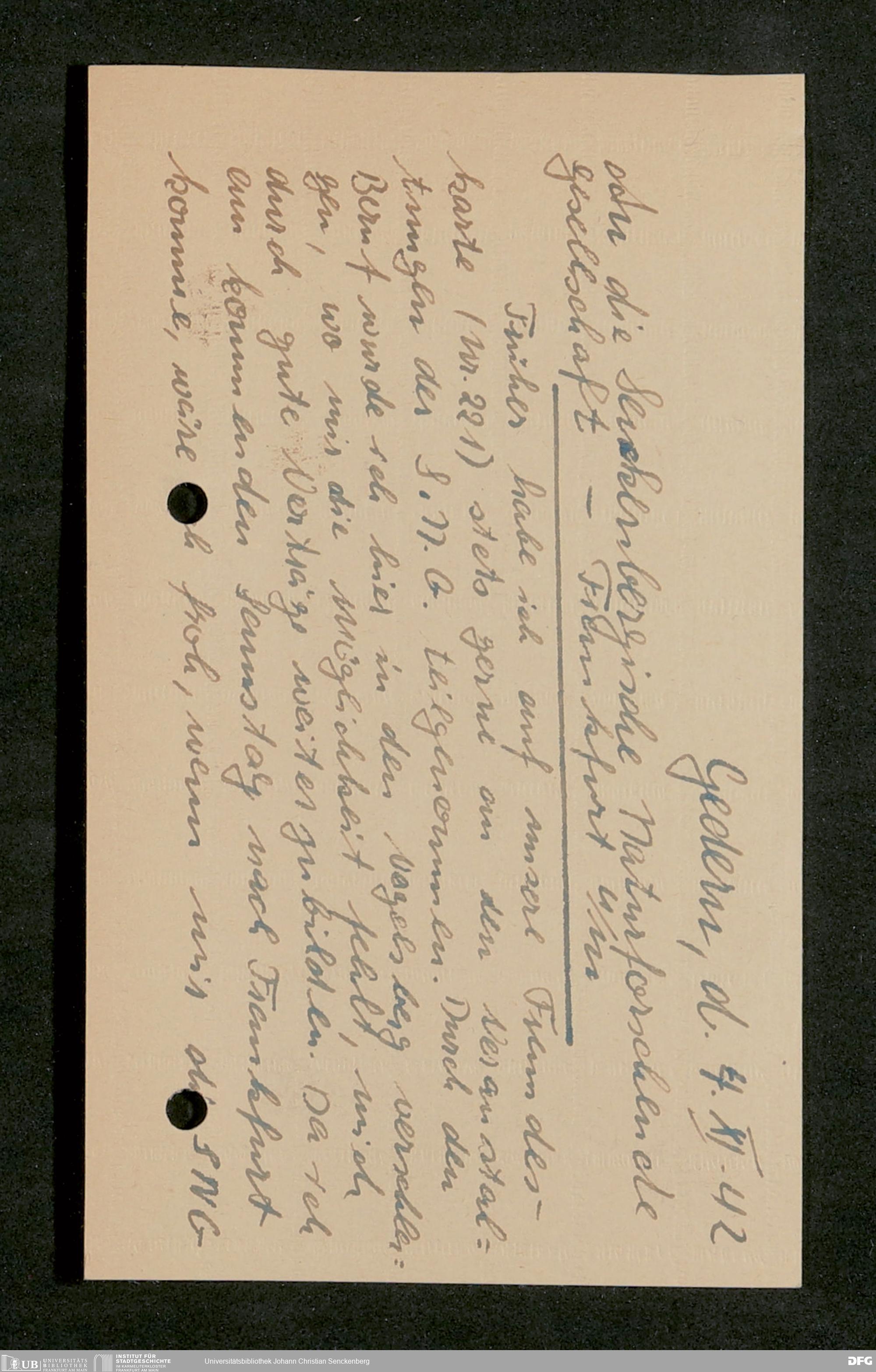 V176 Senckenberg Gesellschaft für Naturforschung, 641 - Vergabe von Freikarten zur Vorlesungen und Vorträgen der Senckenbergischen Naturforschenden Gesellschaft an Firmen, Lazarette und Schulen