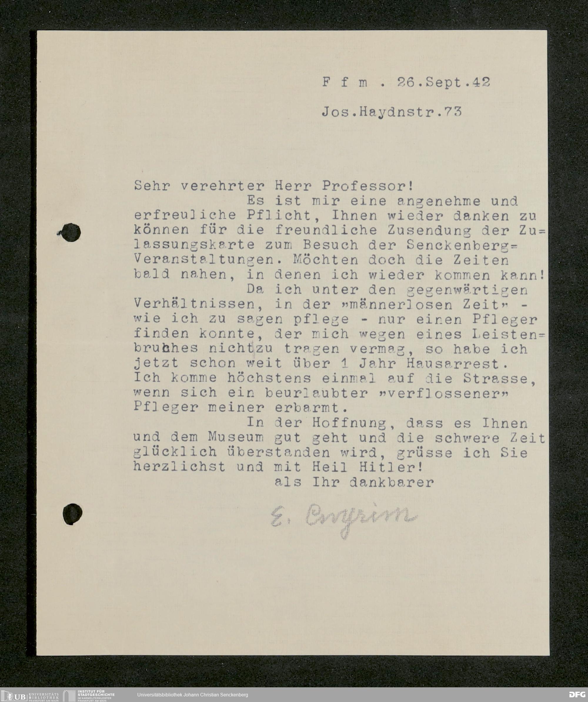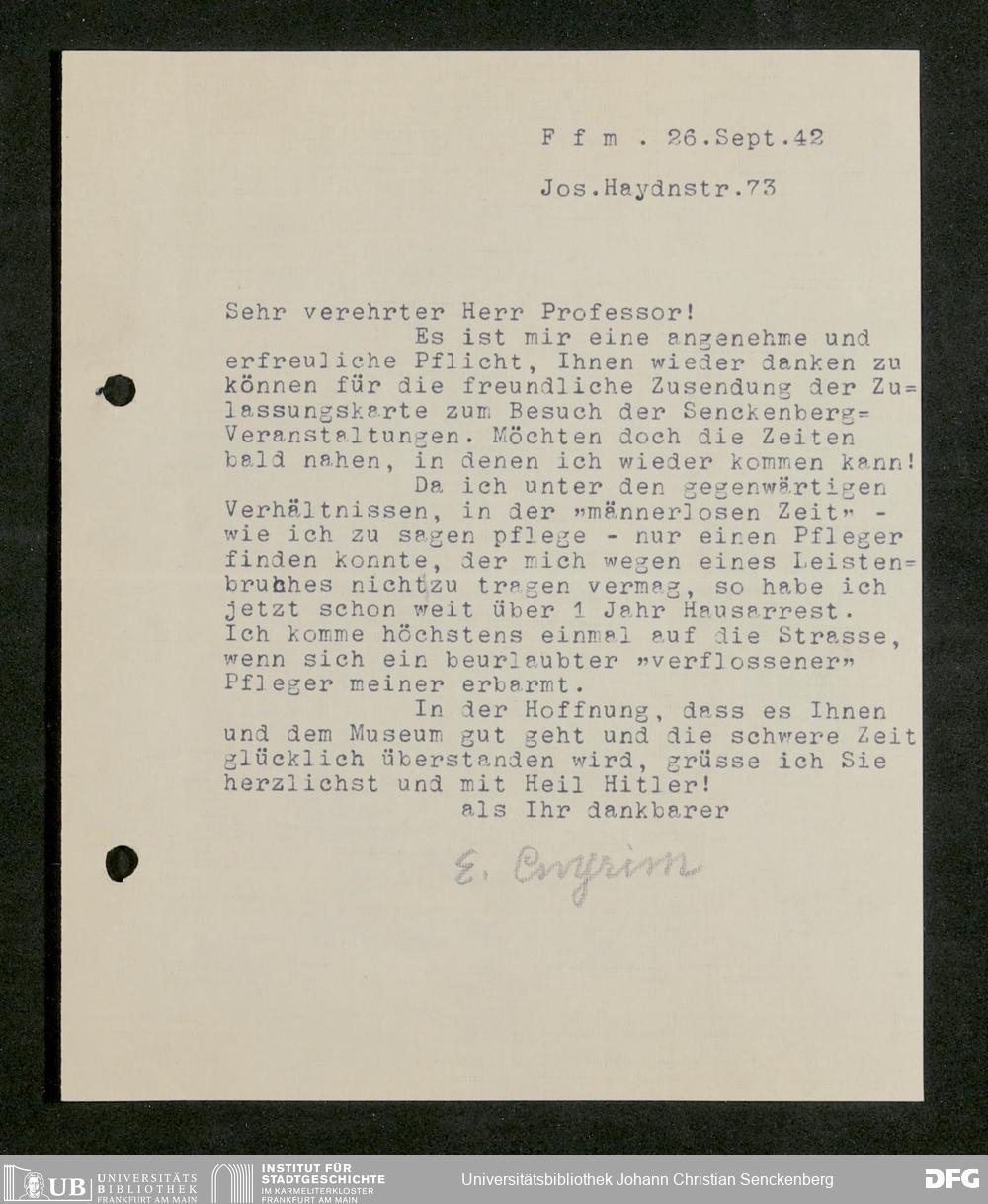 V176 Senckenberg Gesellschaft für Naturforschung, 641 - Vergabe von Freikarten zur Vorlesungen und Vorträgen der Senckenbergischen Naturforschenden Gesellschaft an Firmen, Lazarette und Schulen