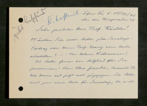 V176 Senckenberg Gesellschaft für Naturforschung, 641 - Vergabe von Freikarten zur Vorlesungen und Vorträgen der Senckenbergischen Naturforschenden Gesellschaft an Firmen, Lazarette und Schulen