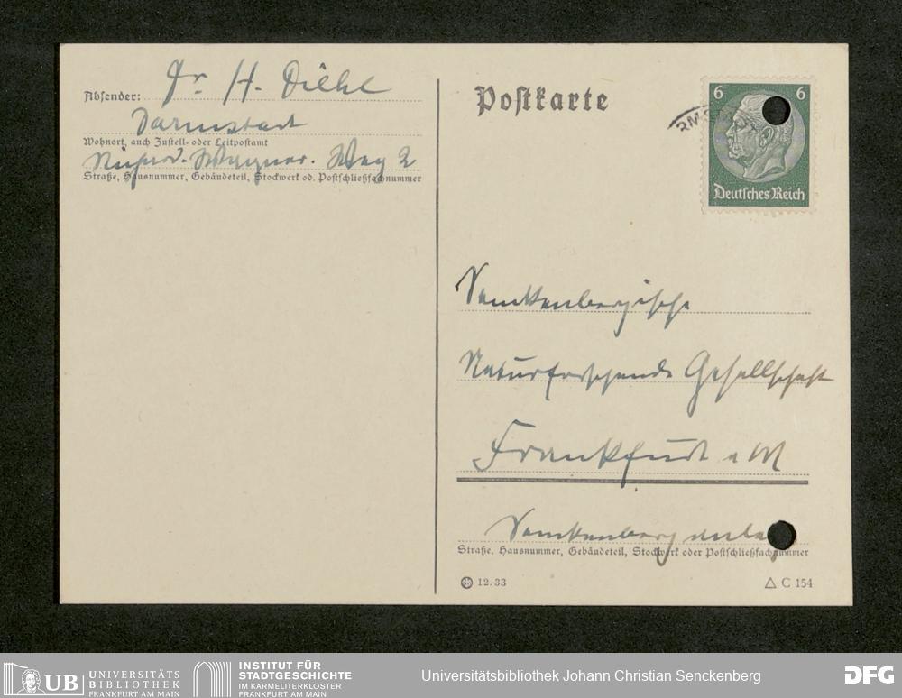 V176 Senckenberg Gesellschaft für Naturforschung, 641 - Vergabe von Freikarten zur Vorlesungen und Vorträgen der Senckenbergischen Naturforschenden Gesellschaft an Firmen, Lazarette und Schulen