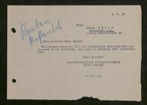 V176 Senckenberg Gesellschaft für Naturforschung, 641 - Vergabe von Freikarten zur Vorlesungen und Vorträgen der Senckenbergischen Naturforschenden Gesellschaft an Firmen, Lazarette und Schulen