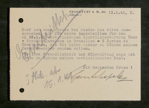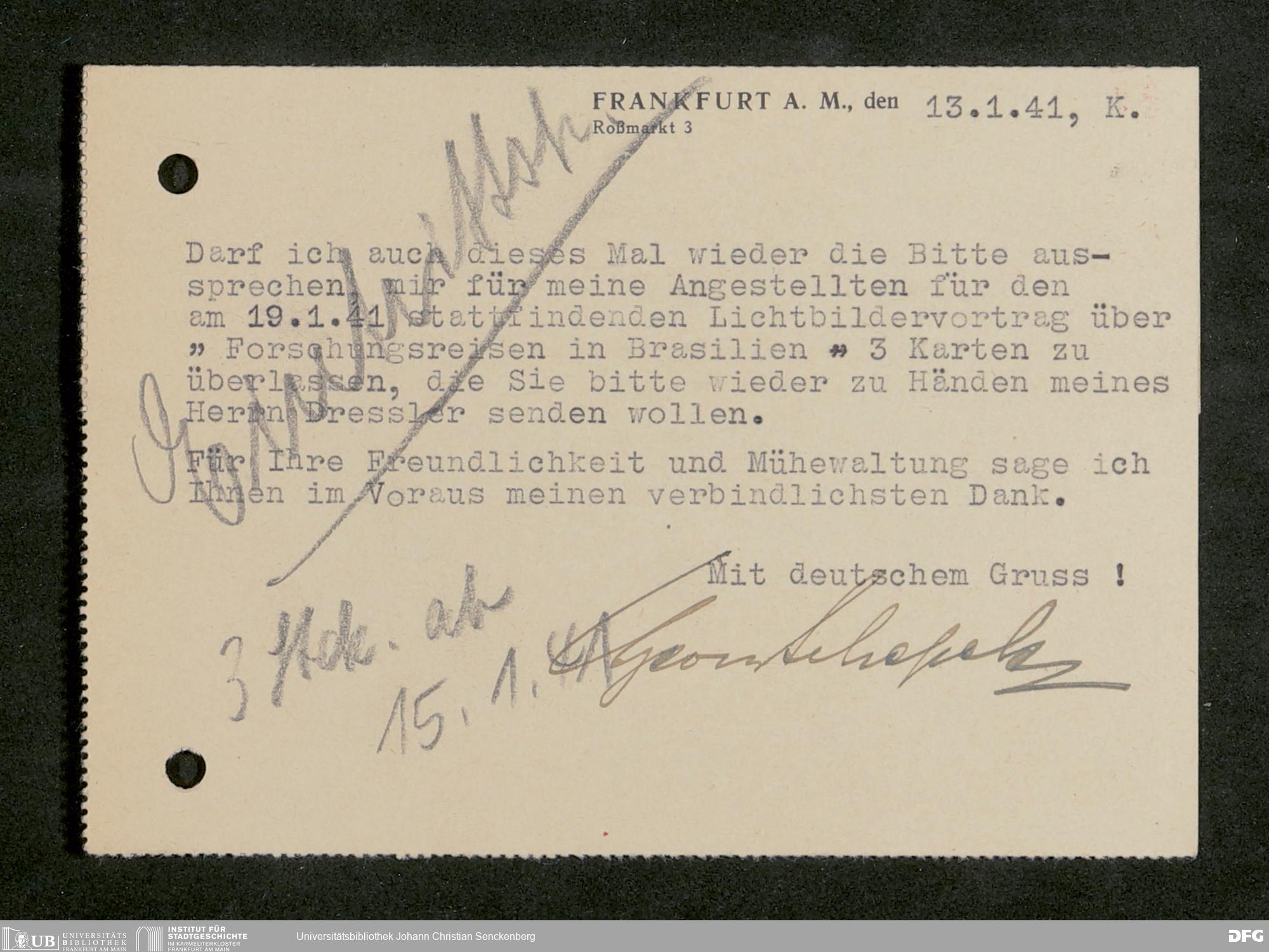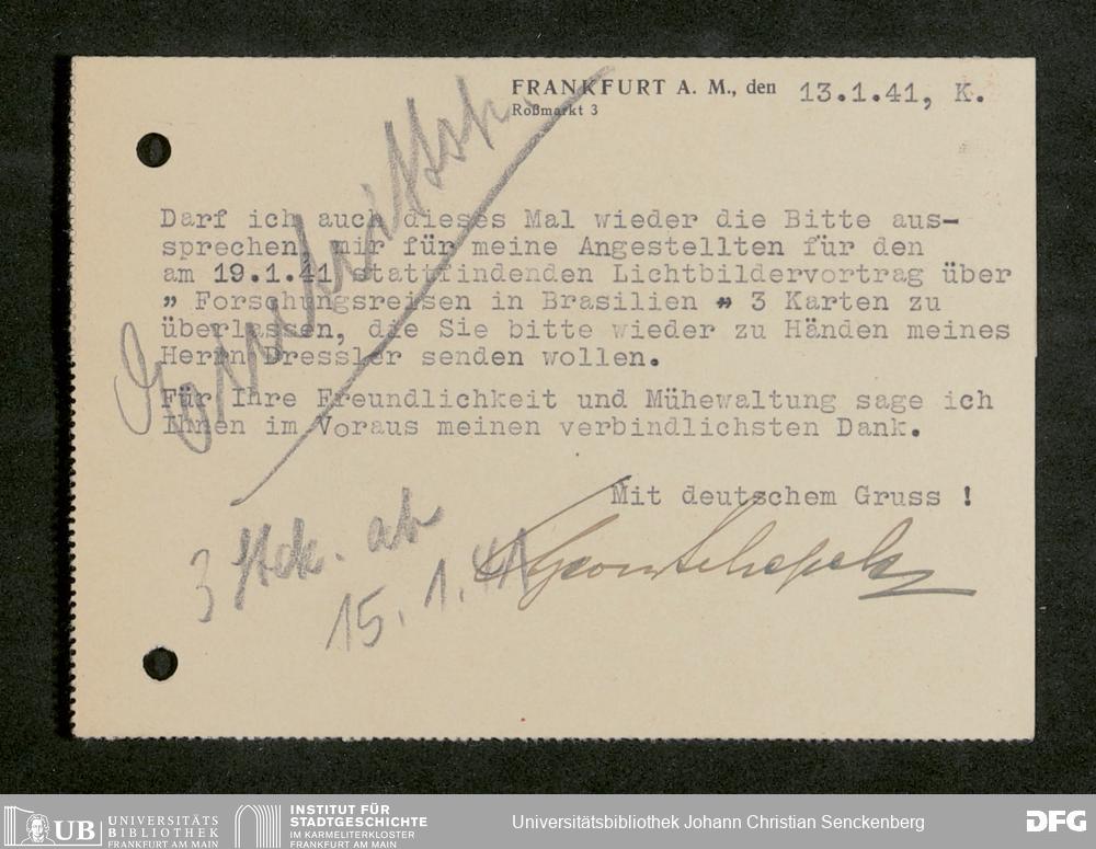 V176 Senckenberg Gesellschaft für Naturforschung, 641 - Vergabe von Freikarten zur Vorlesungen und Vorträgen der Senckenbergischen Naturforschenden Gesellschaft an Firmen, Lazarette und Schulen