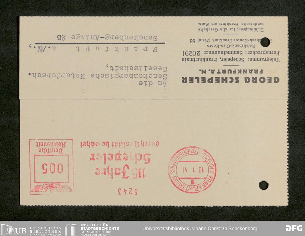 V176 Senckenberg Gesellschaft für Naturforschung, 641 - Vergabe von Freikarten zur Vorlesungen und Vorträgen der Senckenbergischen Naturforschenden Gesellschaft an Firmen, Lazarette und Schulen